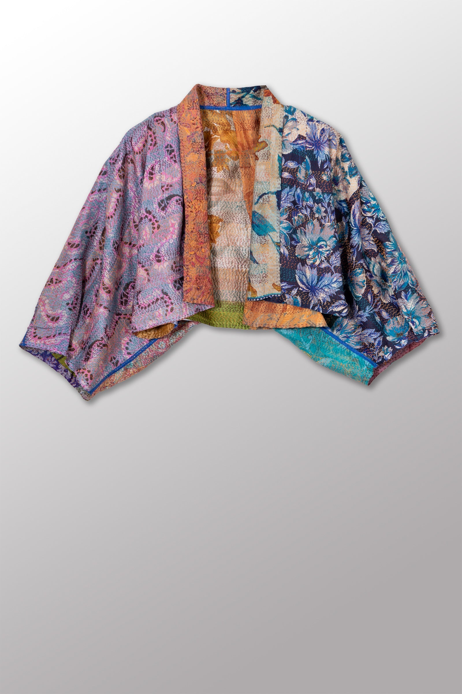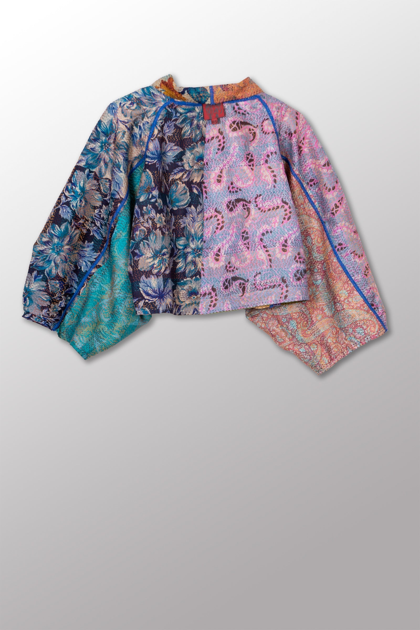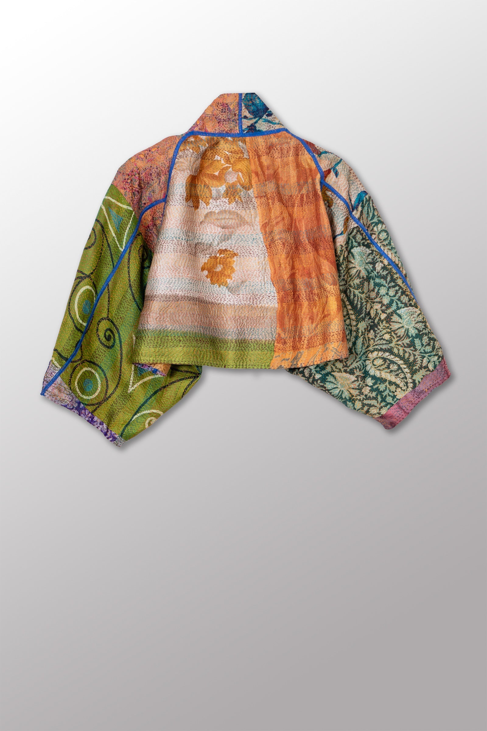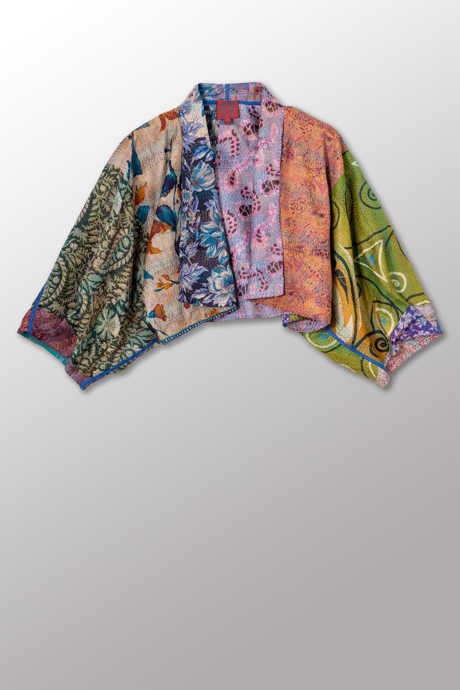 VINTAGE SILK KANTHA PUFF SLV. SHRUG - sv2062-0009a -