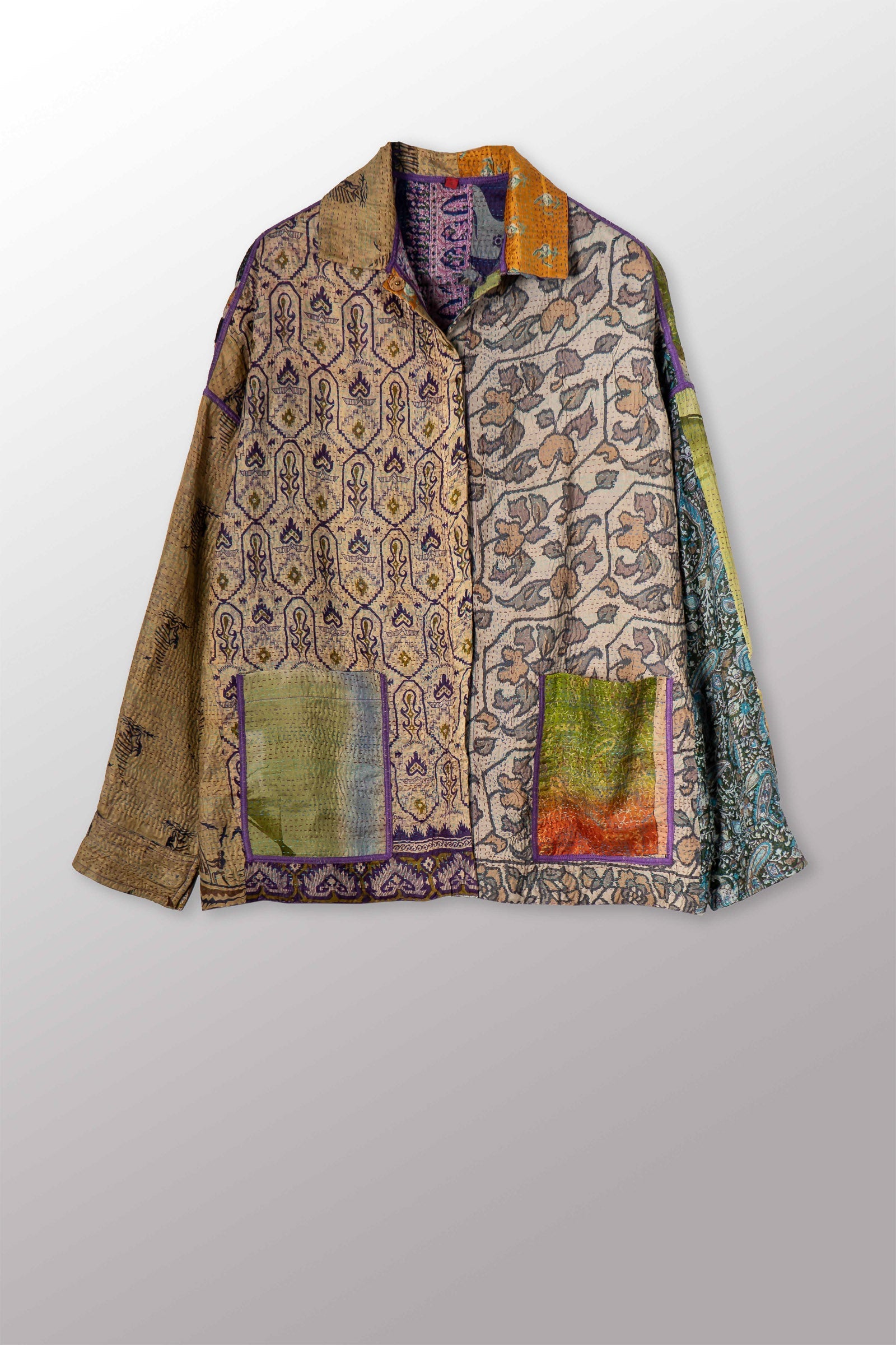 VINTAGE SILK KANTHA RELAXED SHIRT JACKET - sv2j105-0001s -