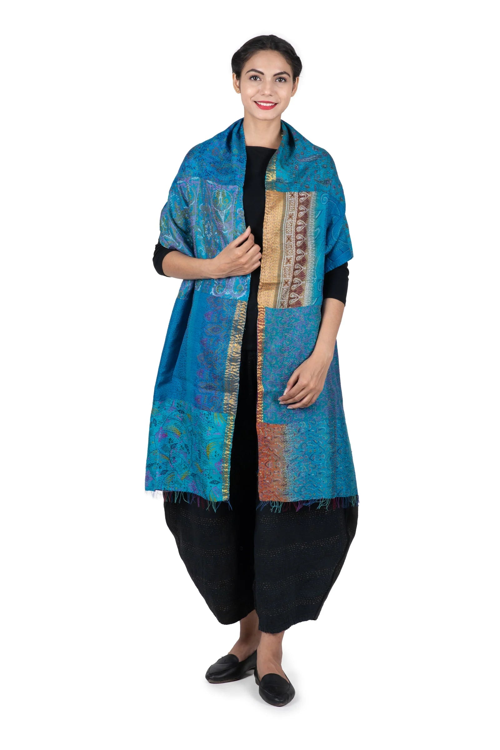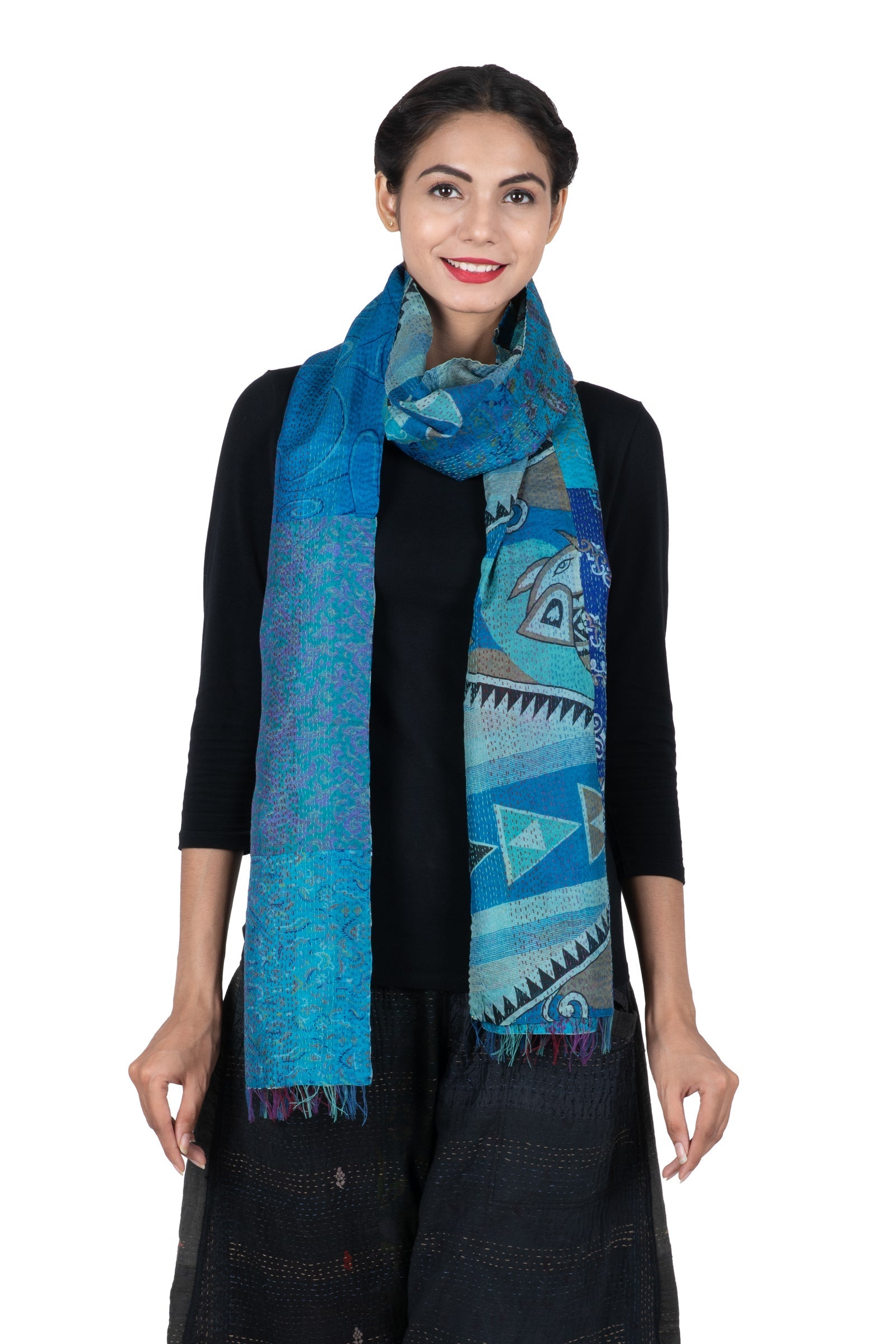 VINTAGE SILK KANTHA SCARF STANDARD - sv2801-blu -