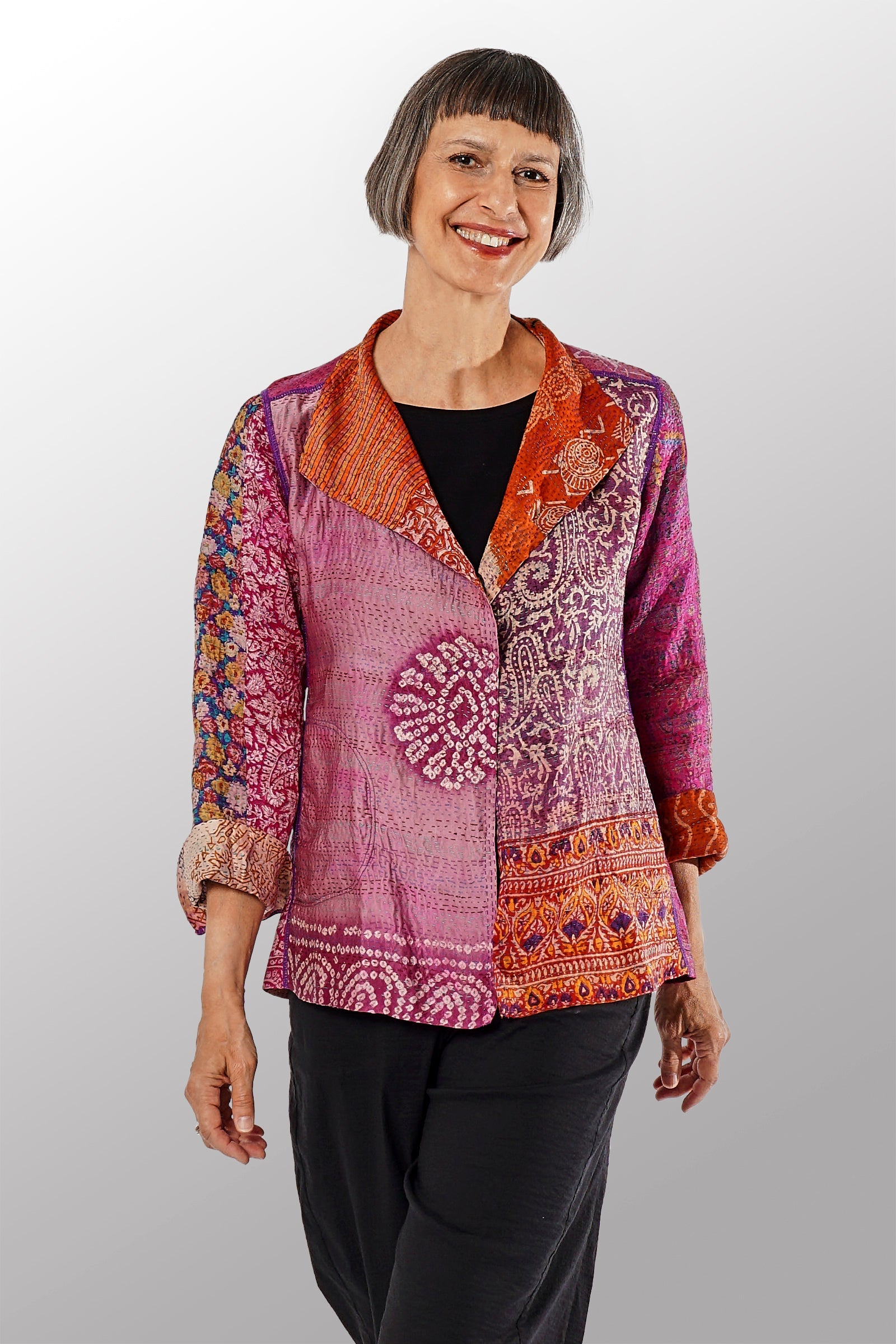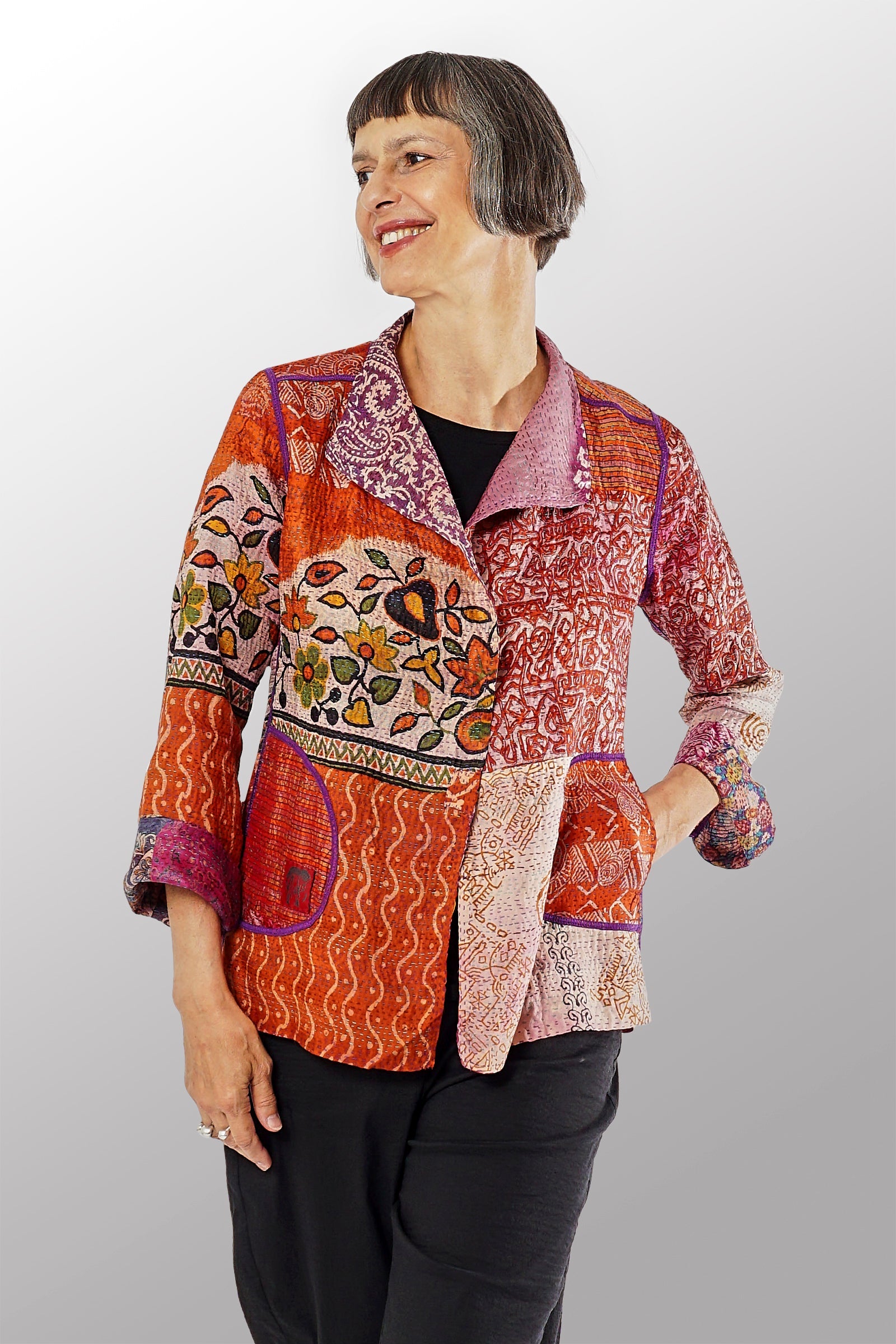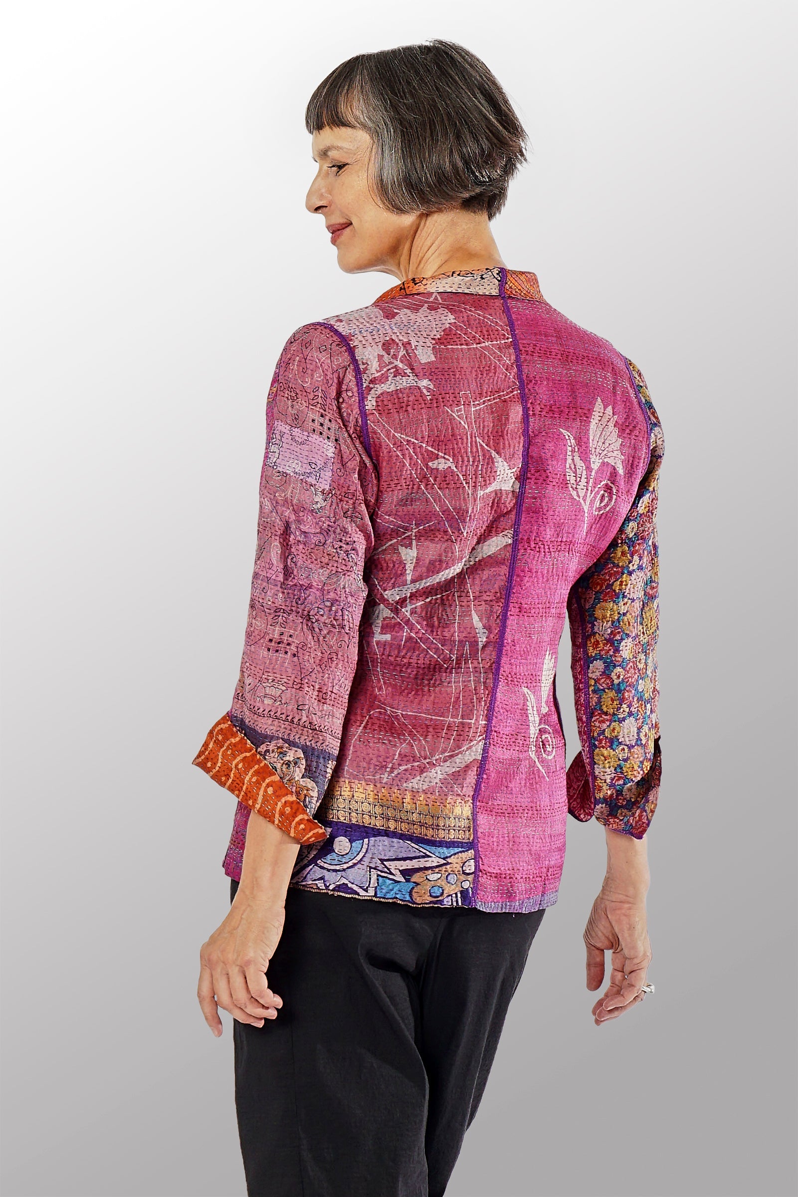 VINTAGE SILK KANTHA SHORT JKT - sv2007-0053m -