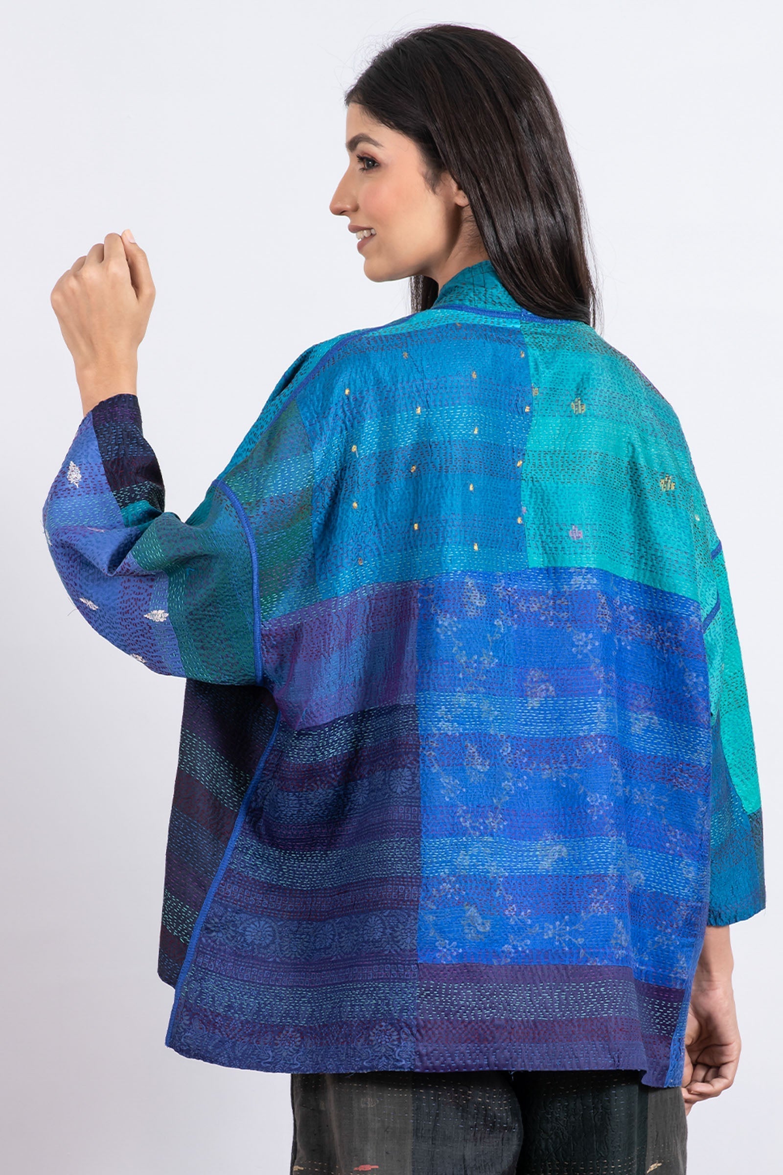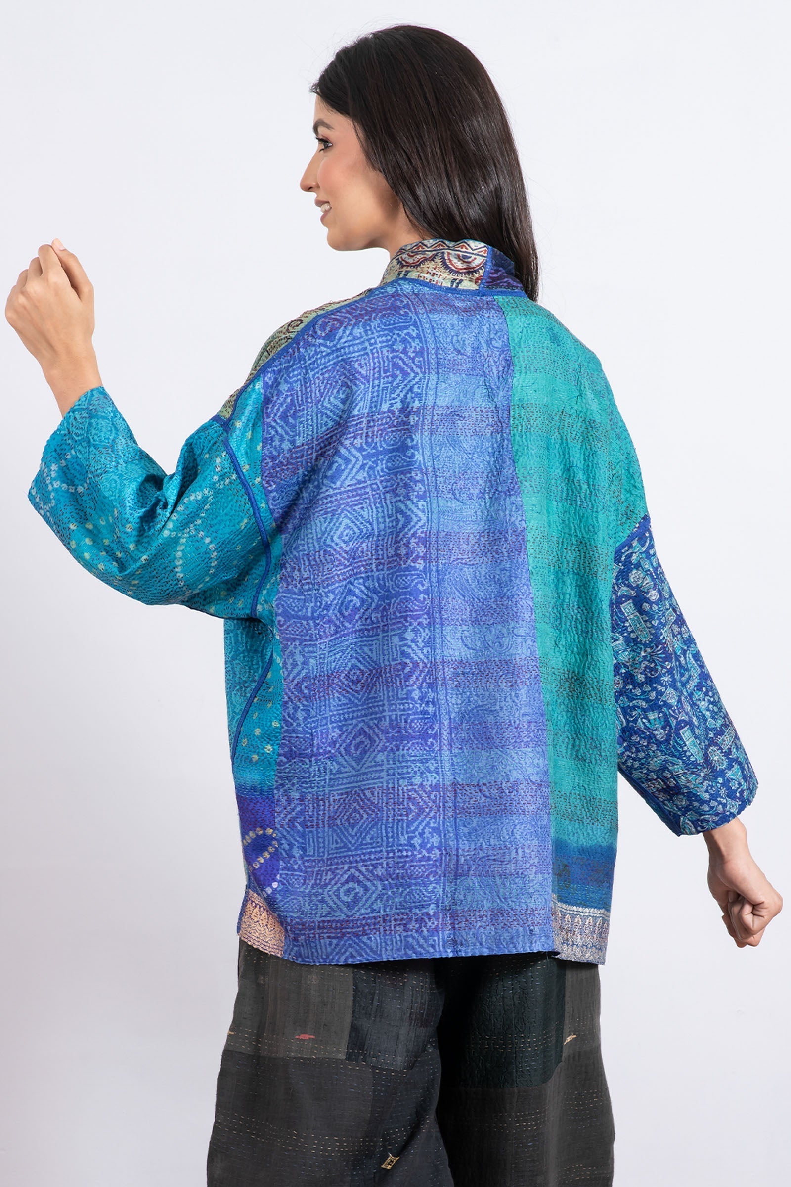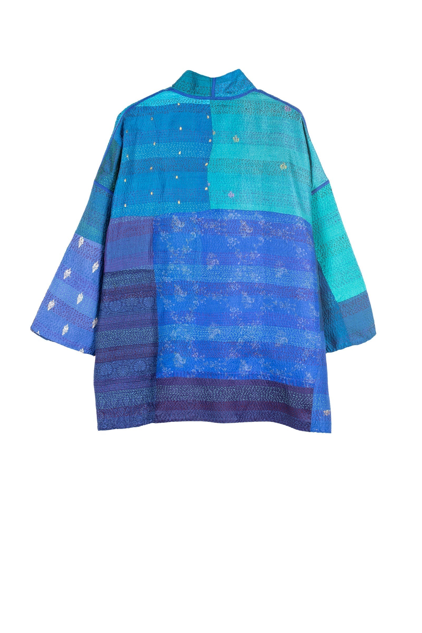 VINTAGE SILK PATCH KANTHA MINI KIMONO JKT - vp2055-blu -