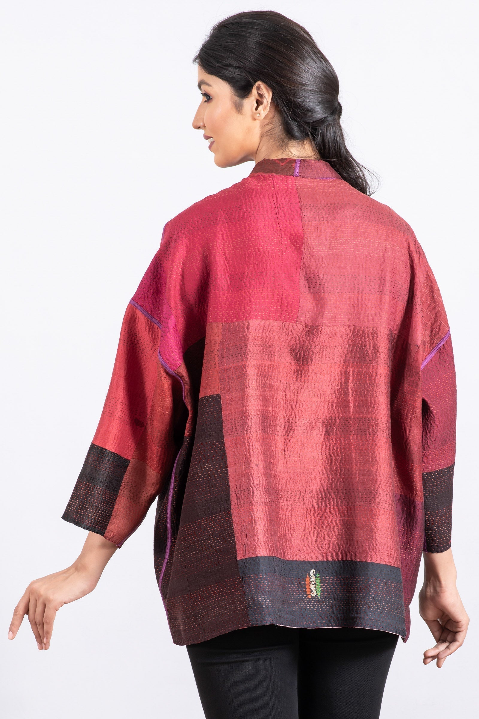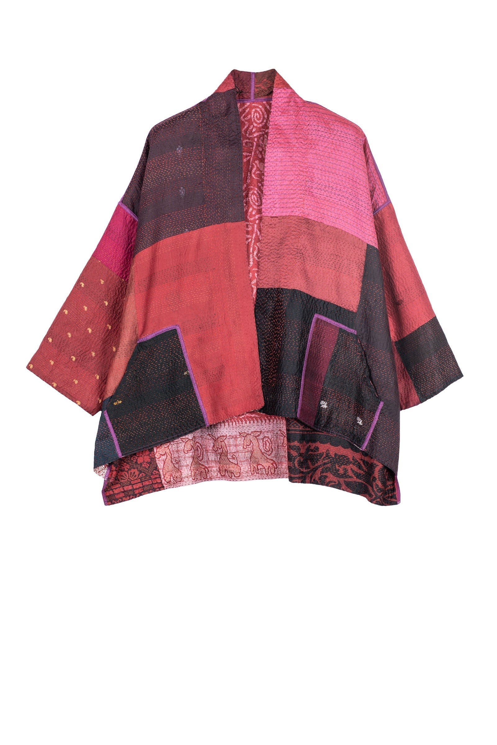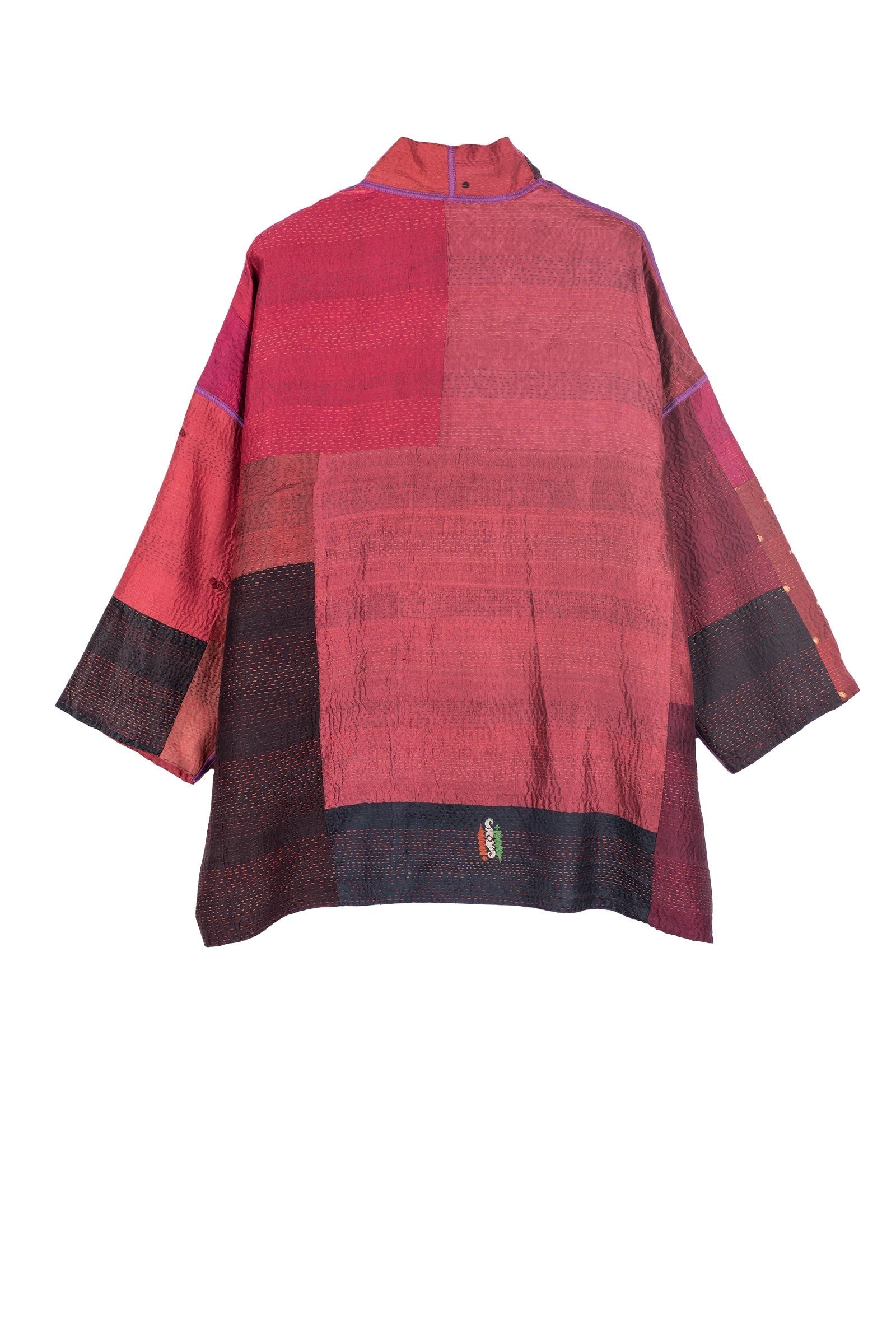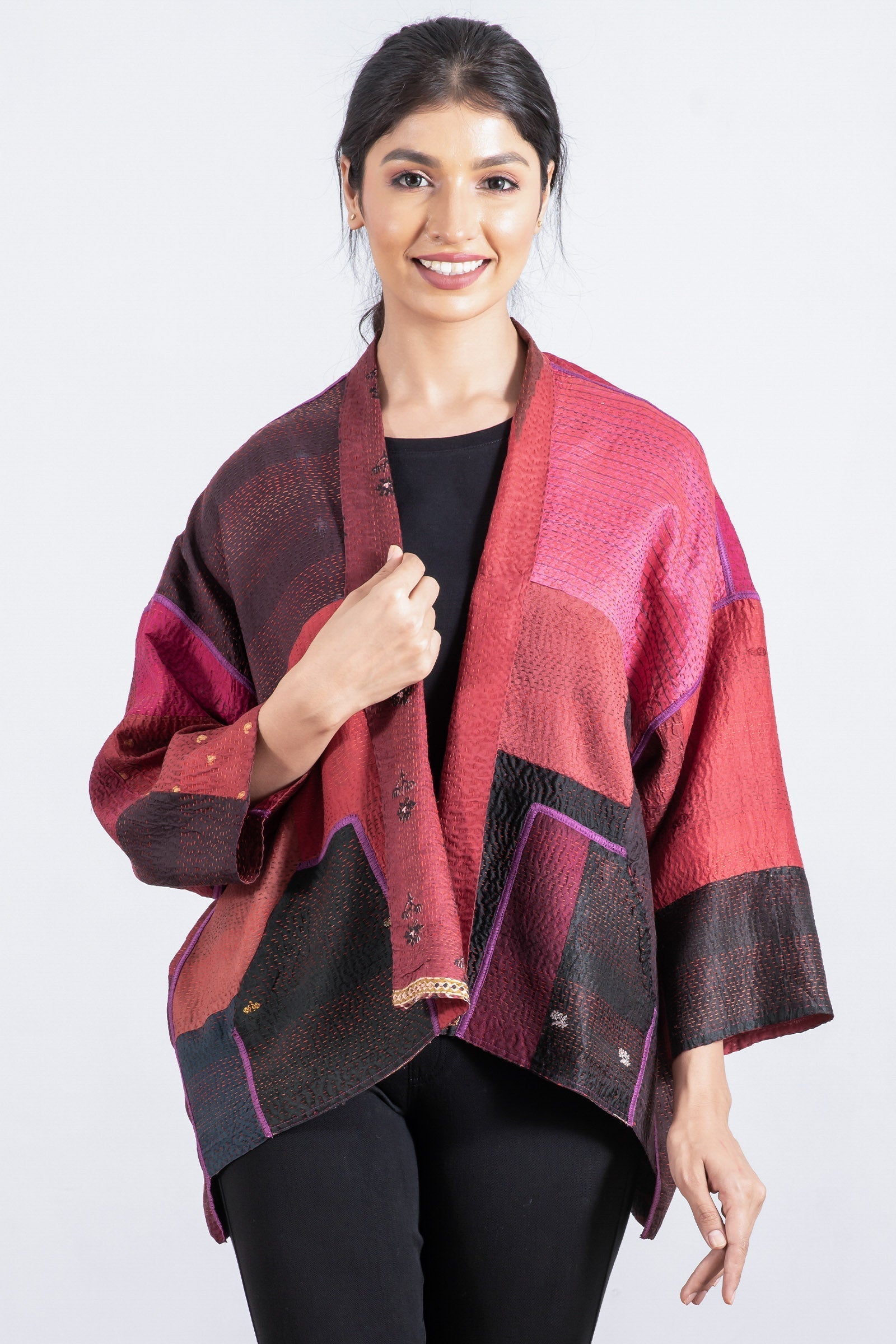 VINTAGE SILK PATCH KANTHA MINI KIMONO JKT - vp2055-red -