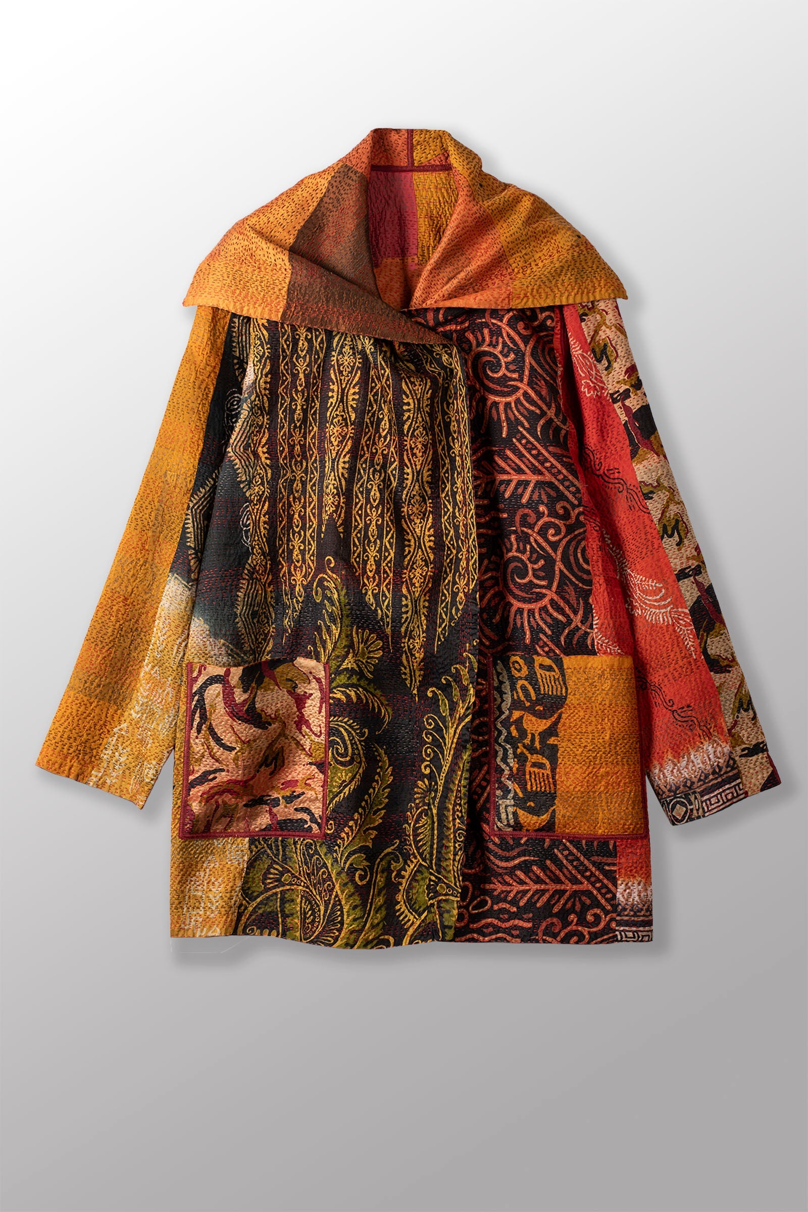 VINTAGE SILK PATCH KANTHA POCKET JKT - vp2002-ylw -