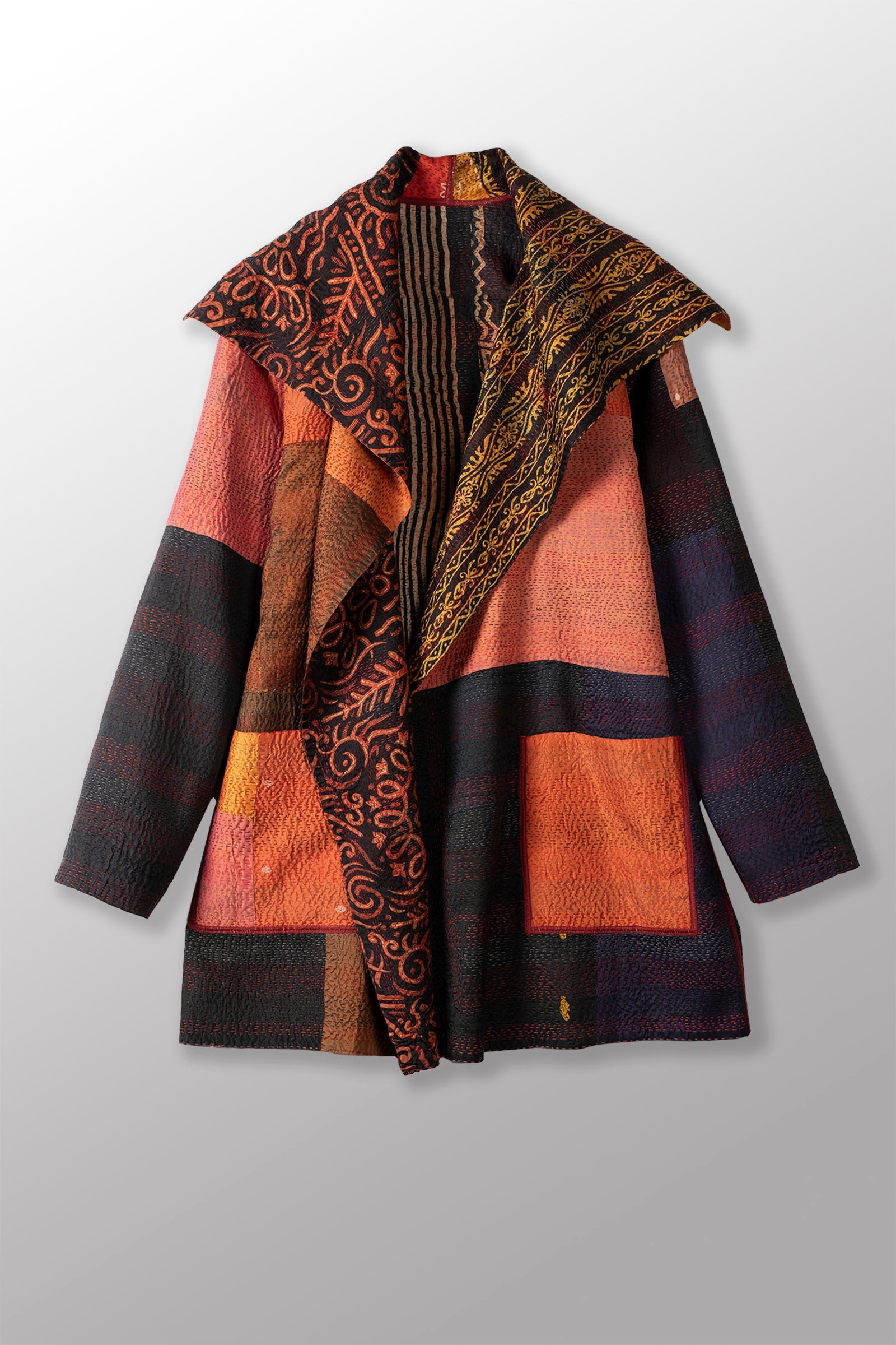 2 Layer Vintage Saris with Hand Stitches on Entire Garment - Reversible