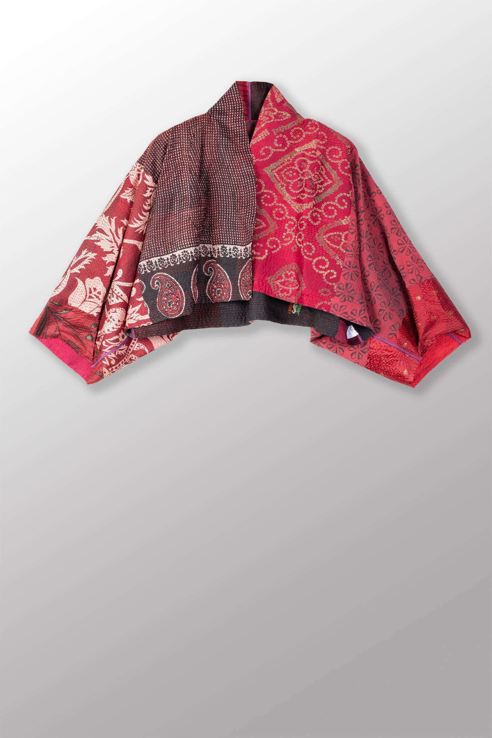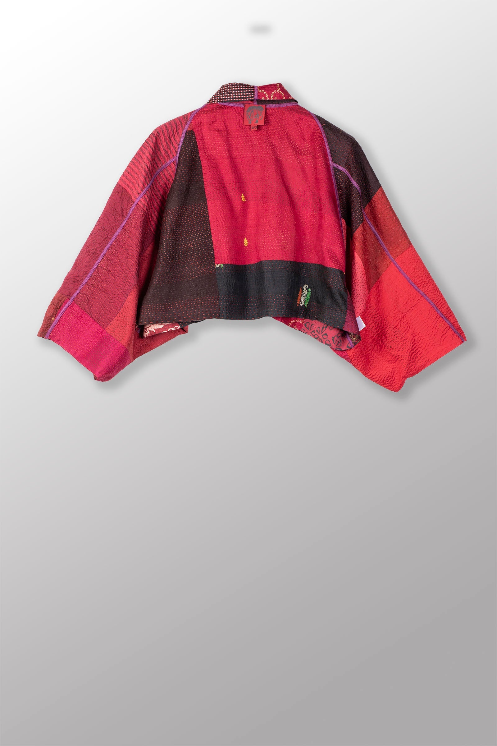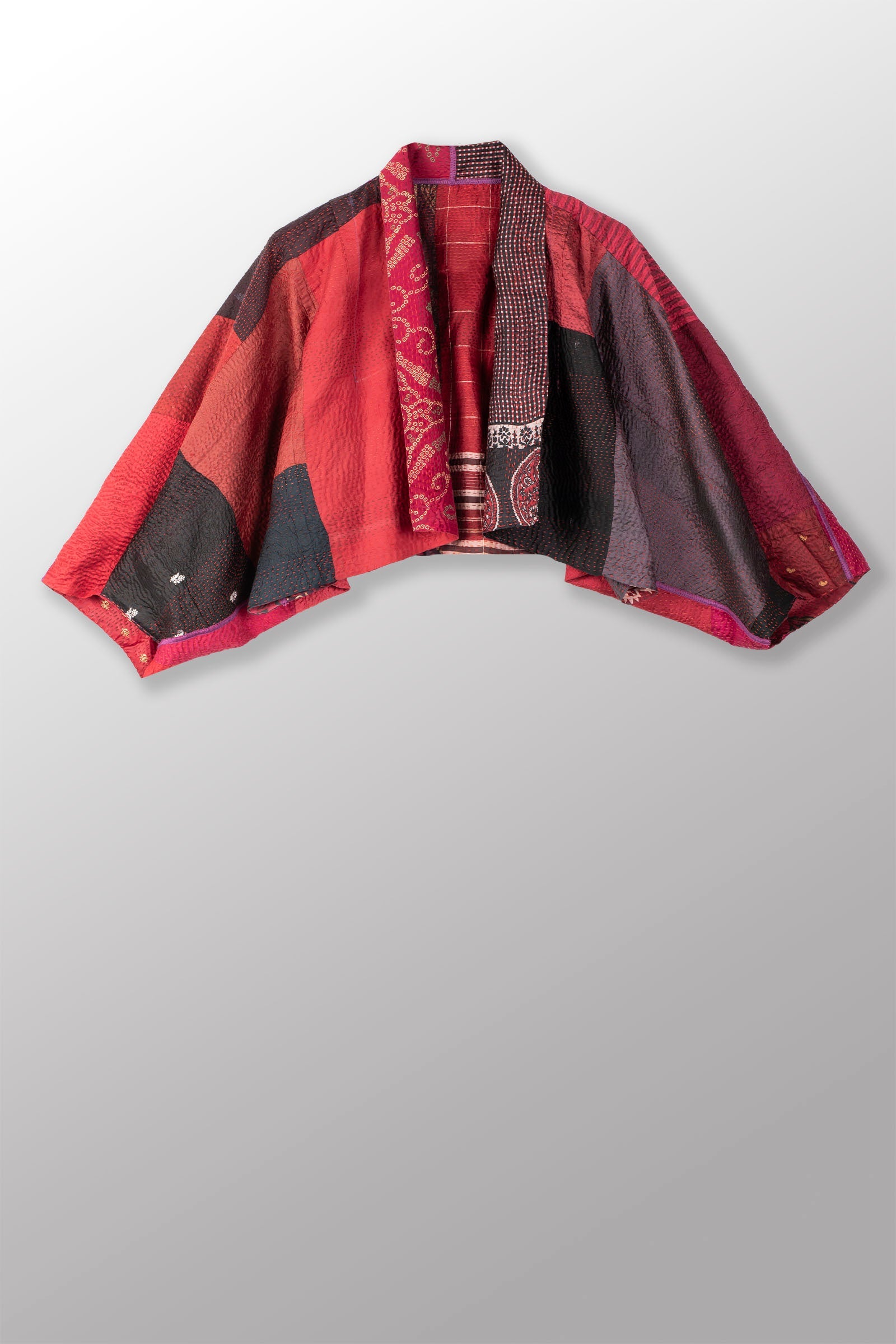 VINTAGE SILK PATCH KANTHA PUFF SLV. SHRUG - vp2062-red -