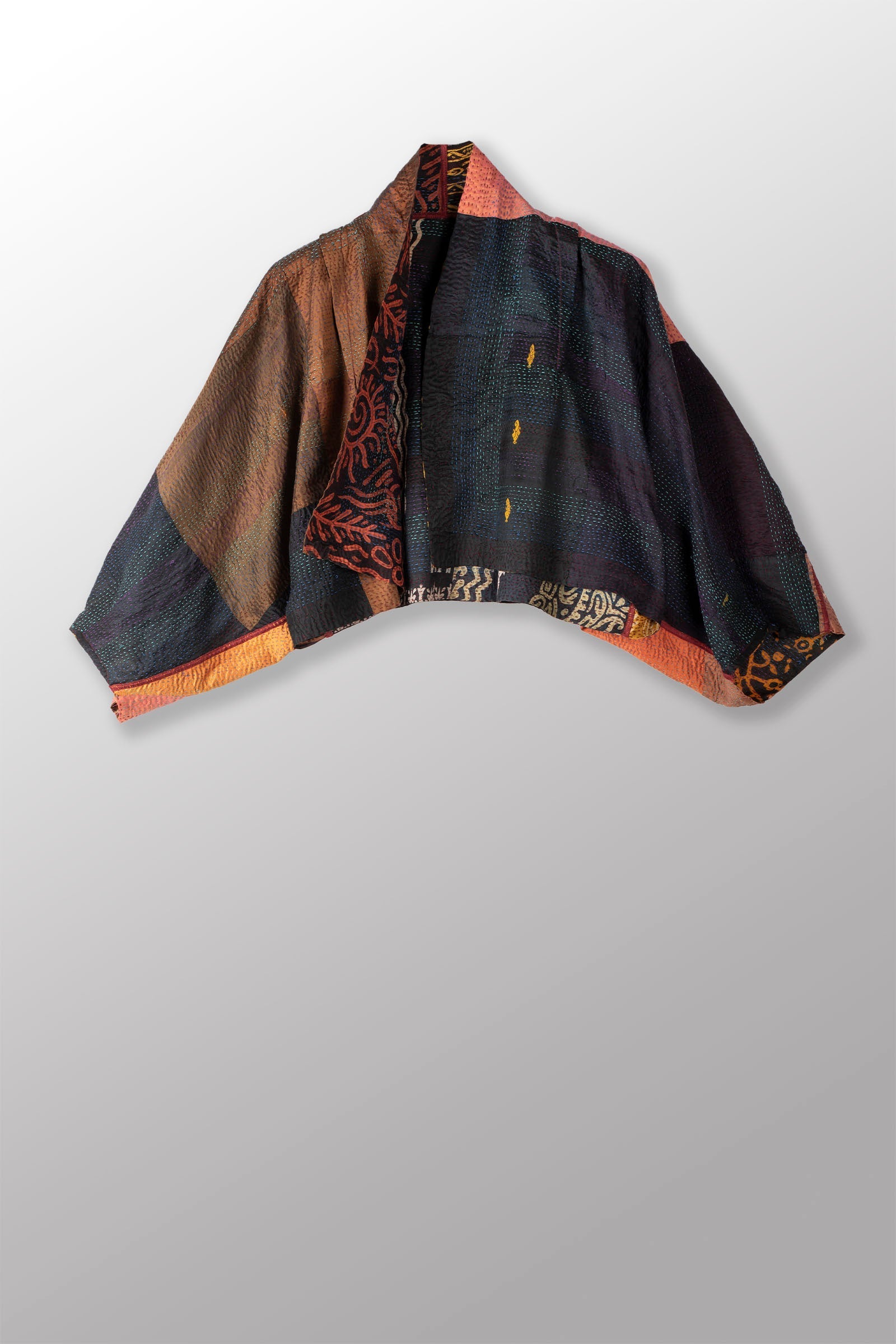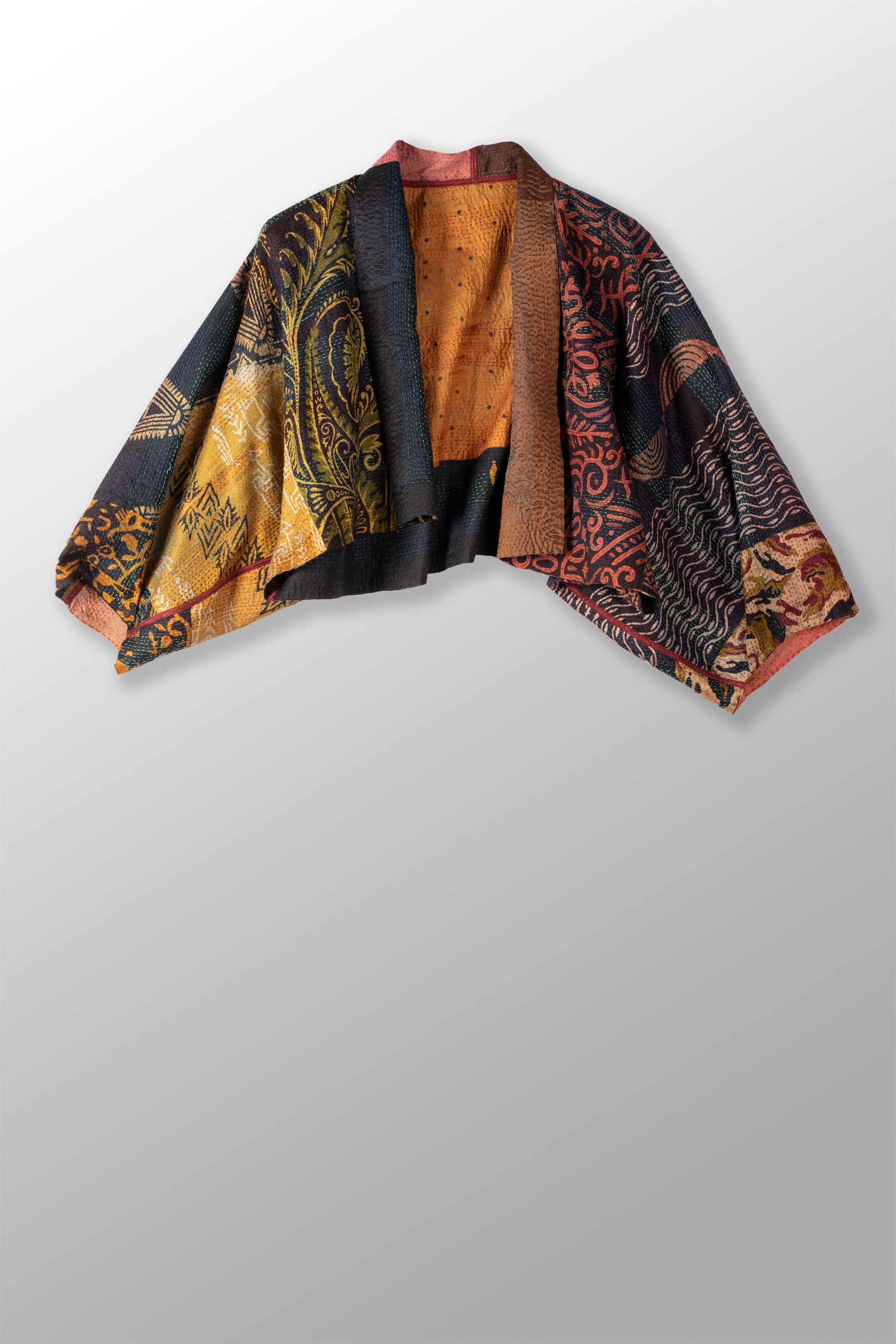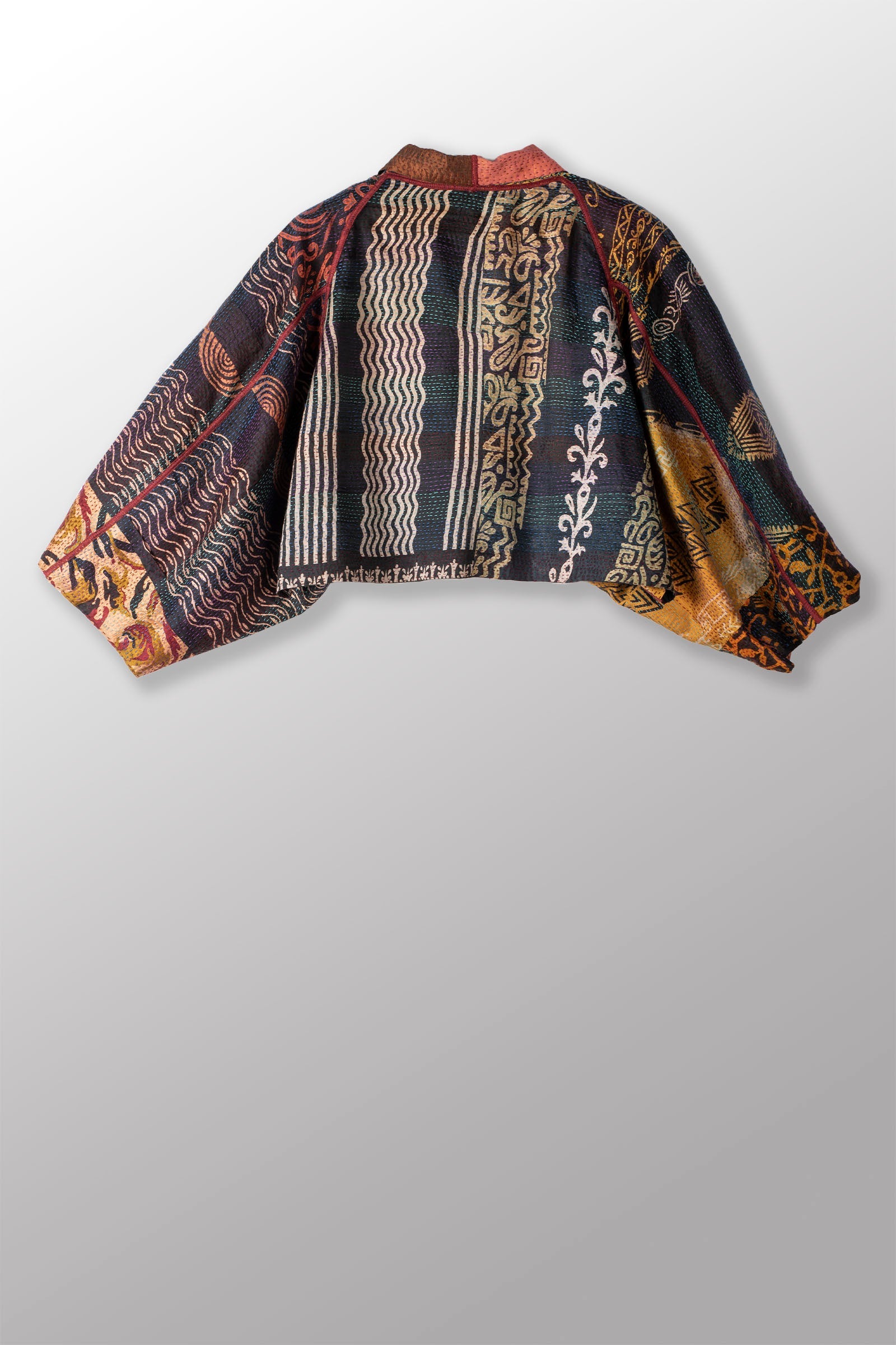VINTAGE SILK PATCH KANTHA PUFF SLV. SHRUG - vp2062-ylw -