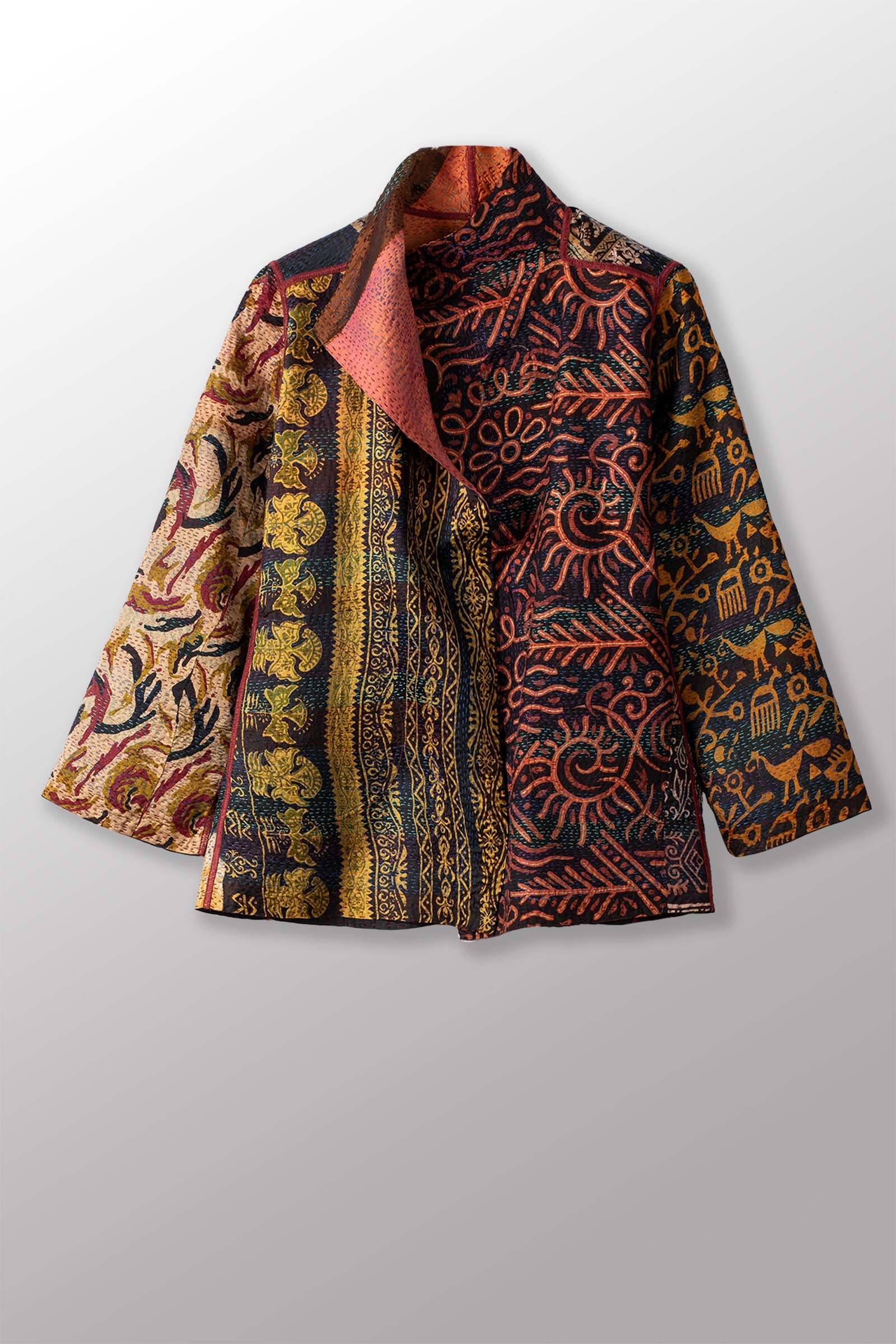 2 Layer Vintage Saris with Hand Stitches on Entire Garment - Reversible