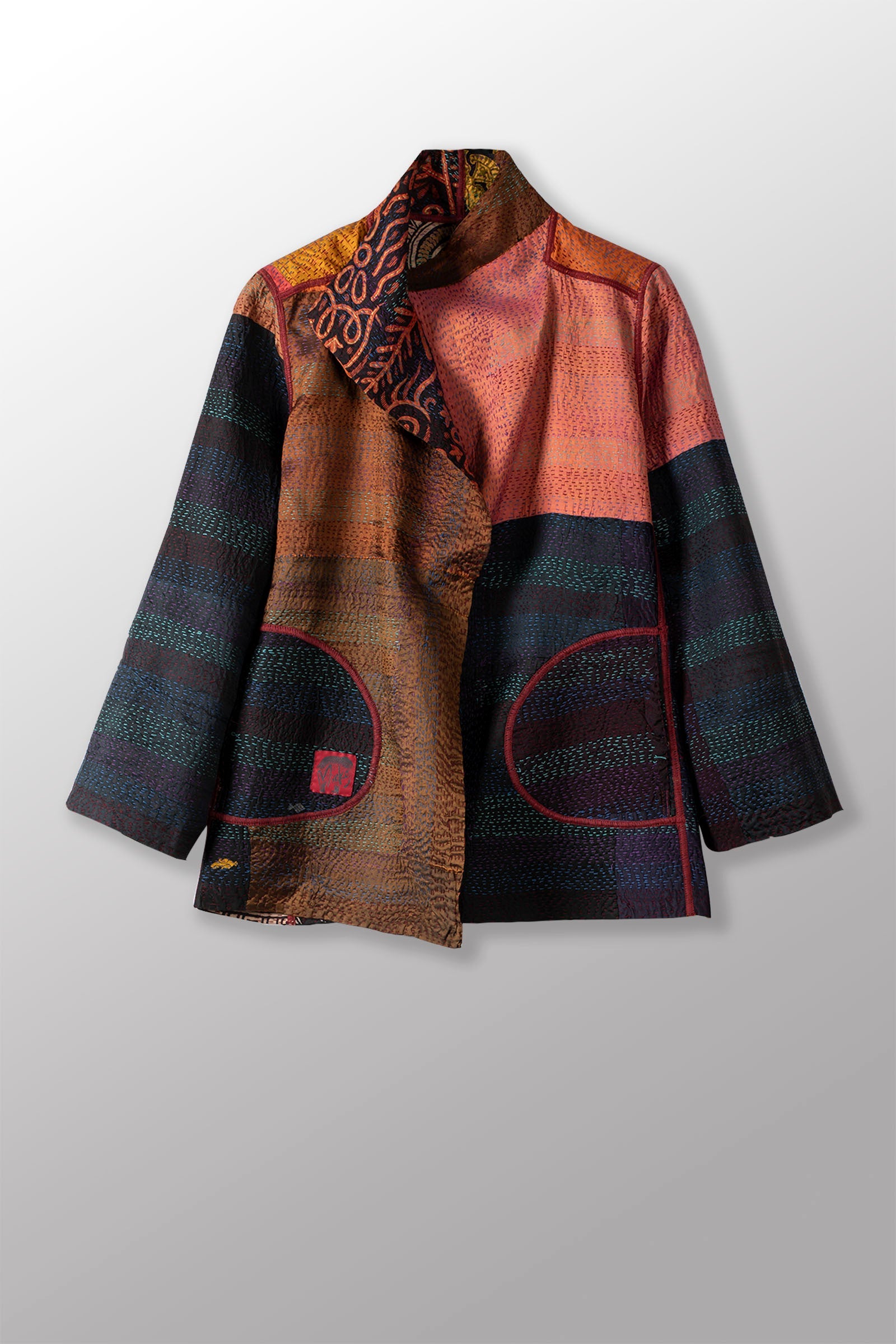 VINTAGE SILK PATCH KANTHA SHORT JACKET - vp2007-ylw -