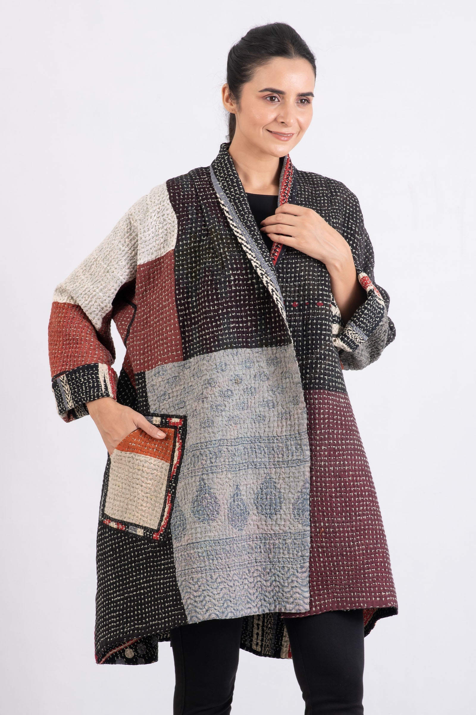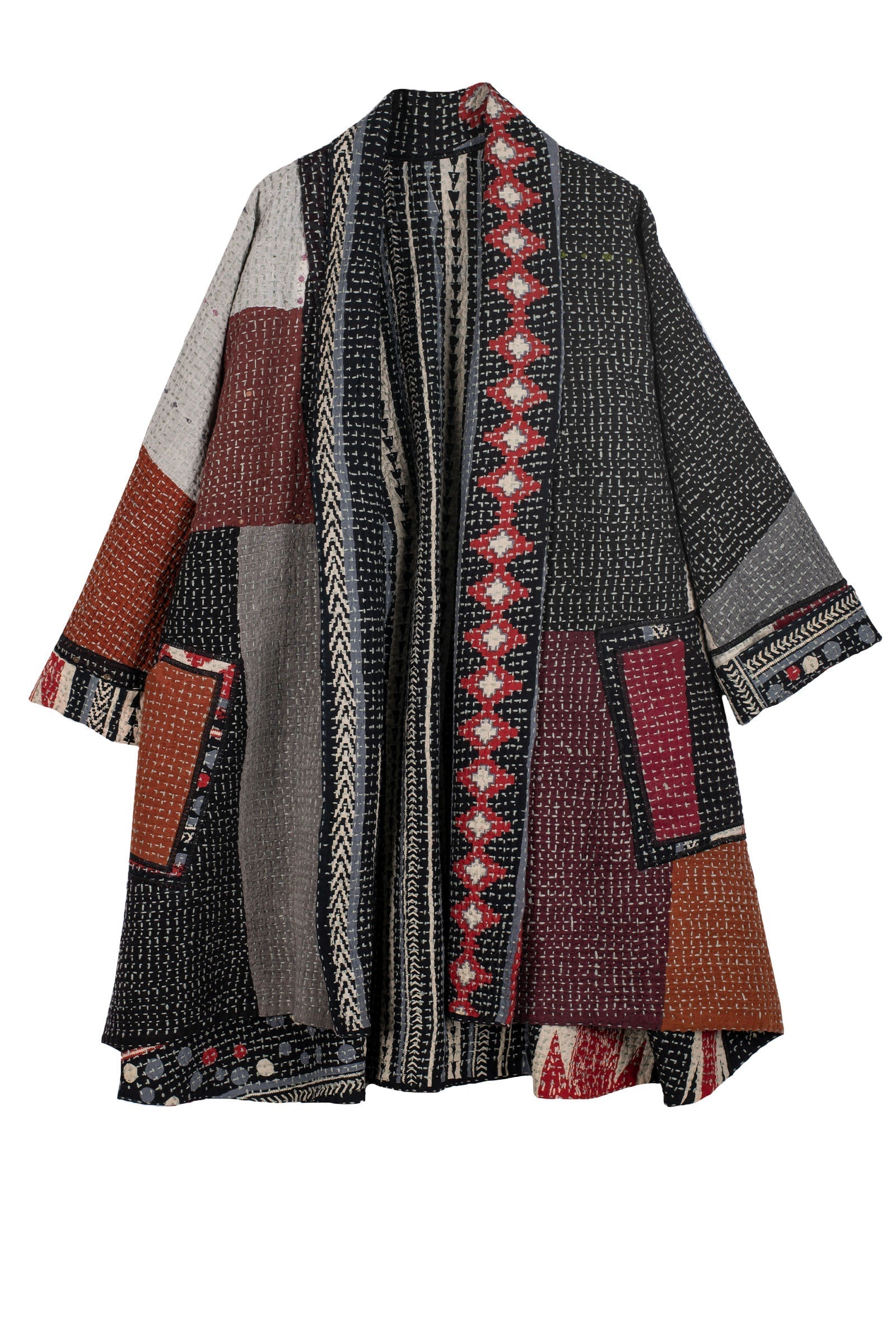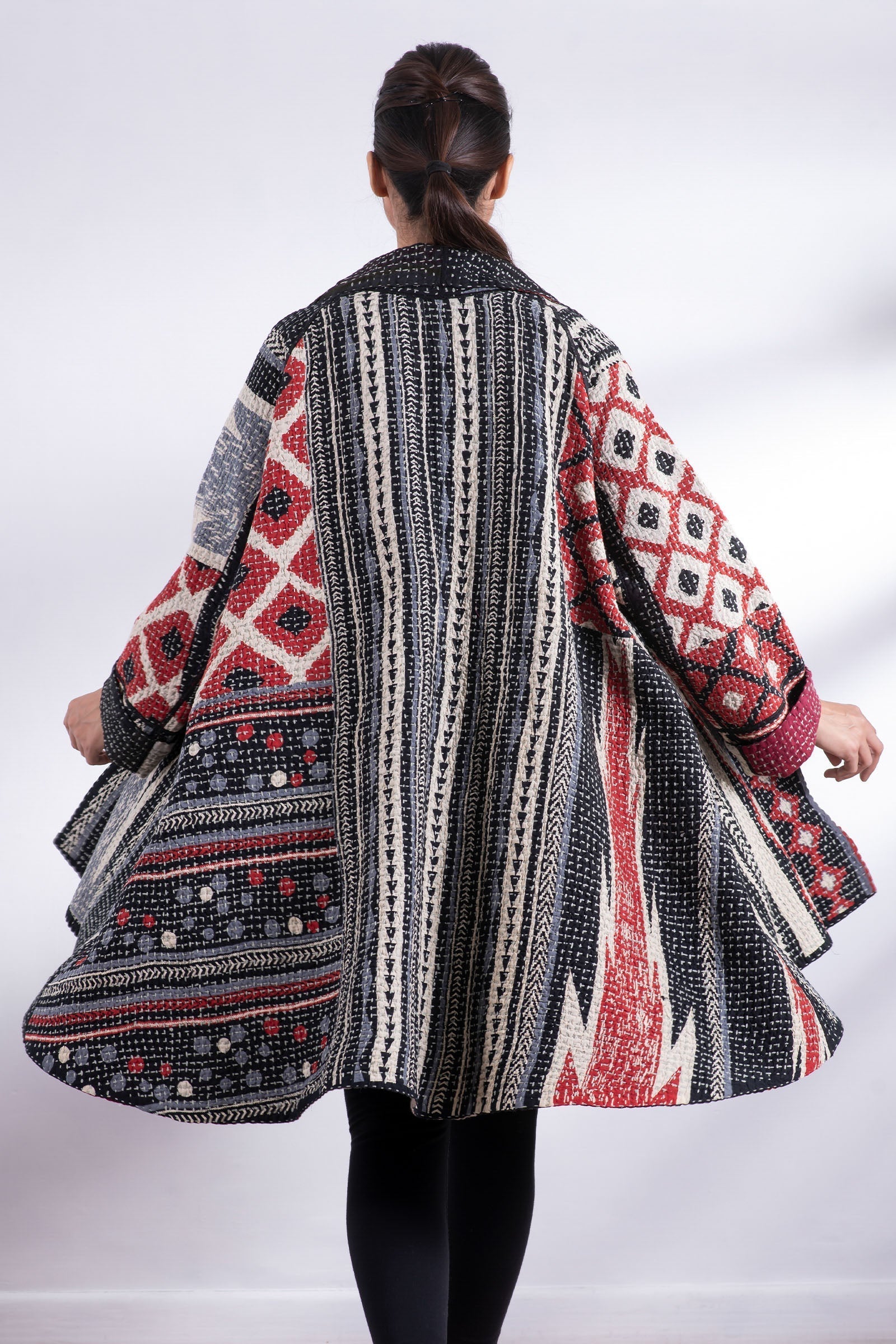 3 Layer Vintage Saris with Hand Stitches on Entire Garment