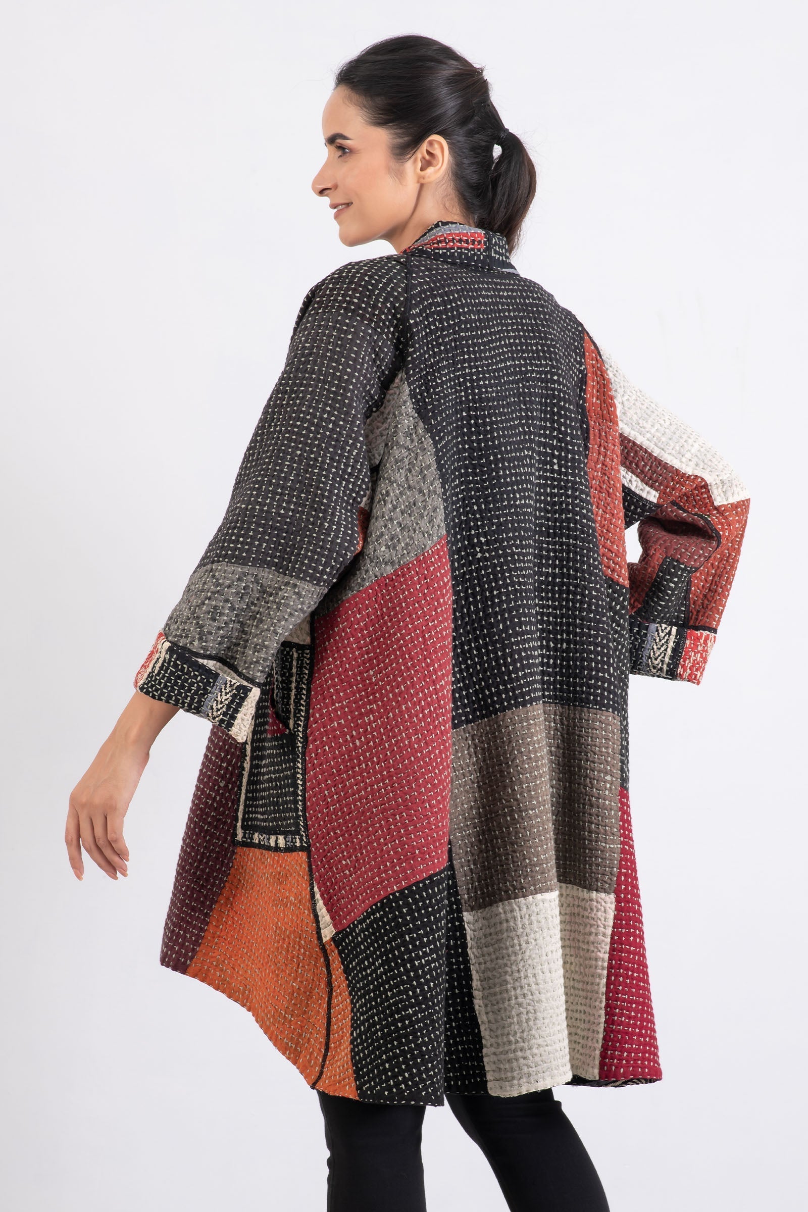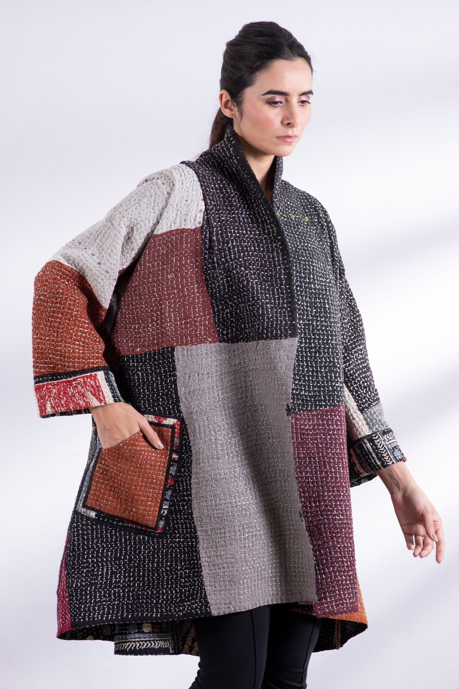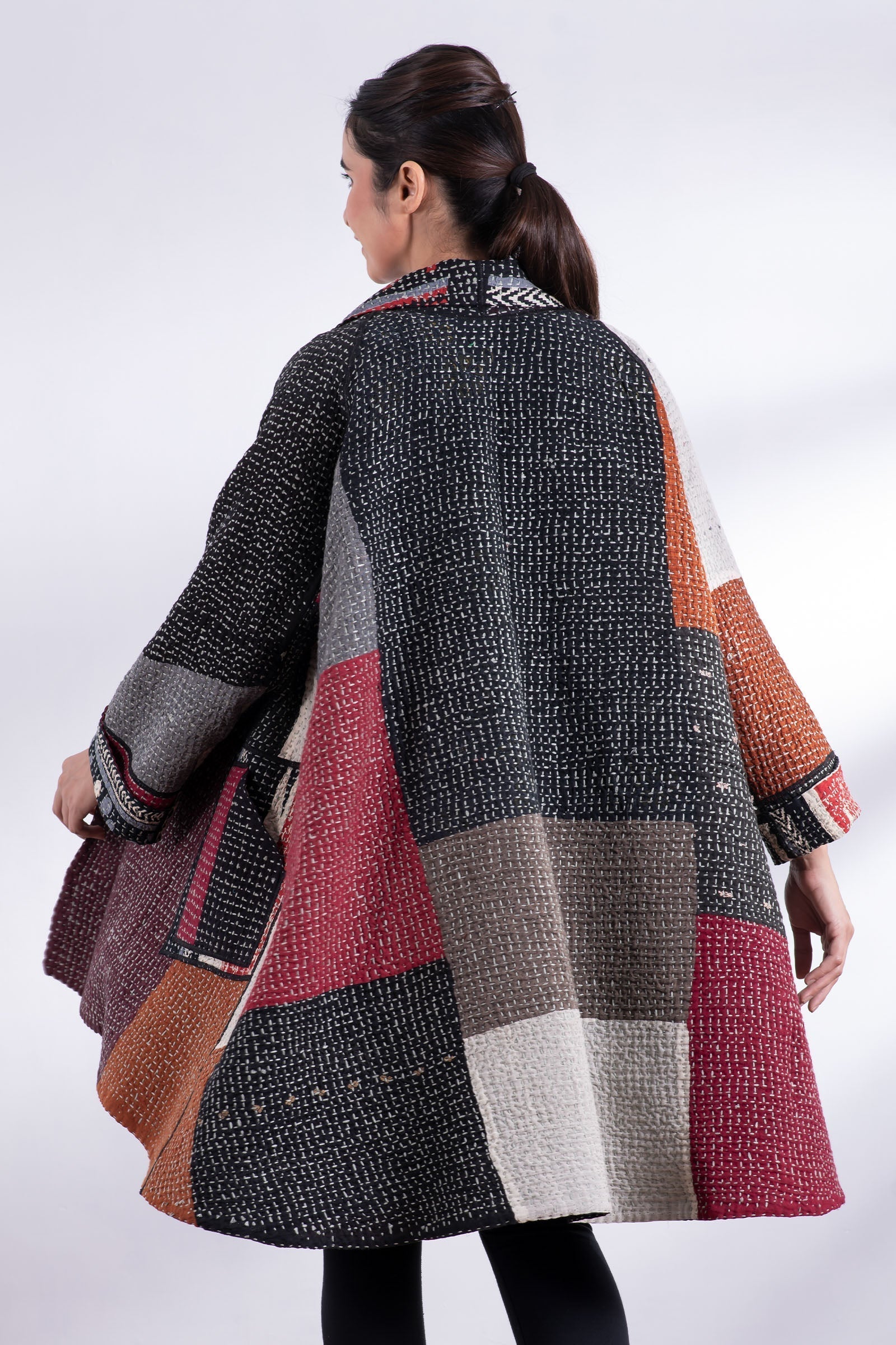 3 Layer Vintage Saris with Hand Stitches on Entire Garment
