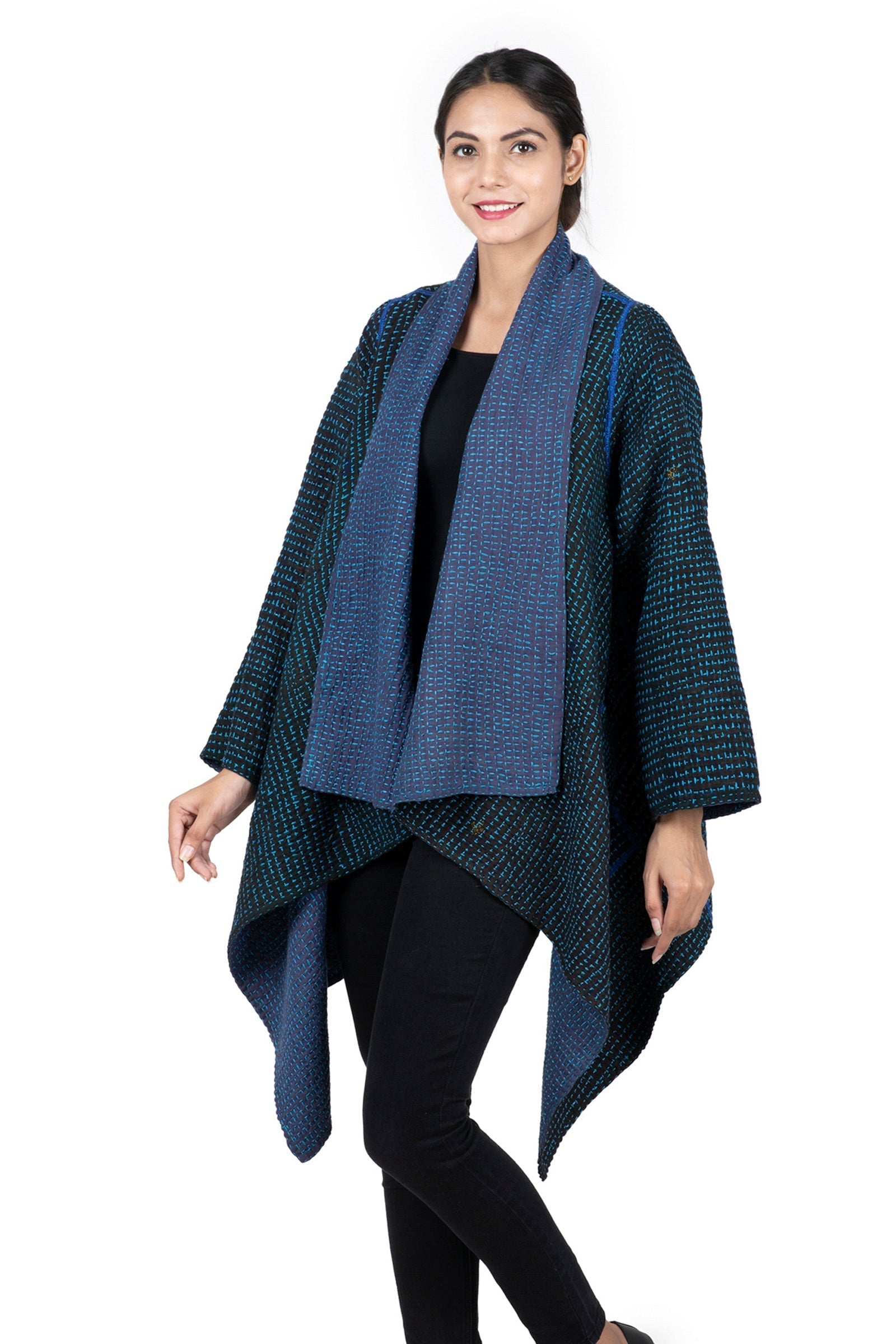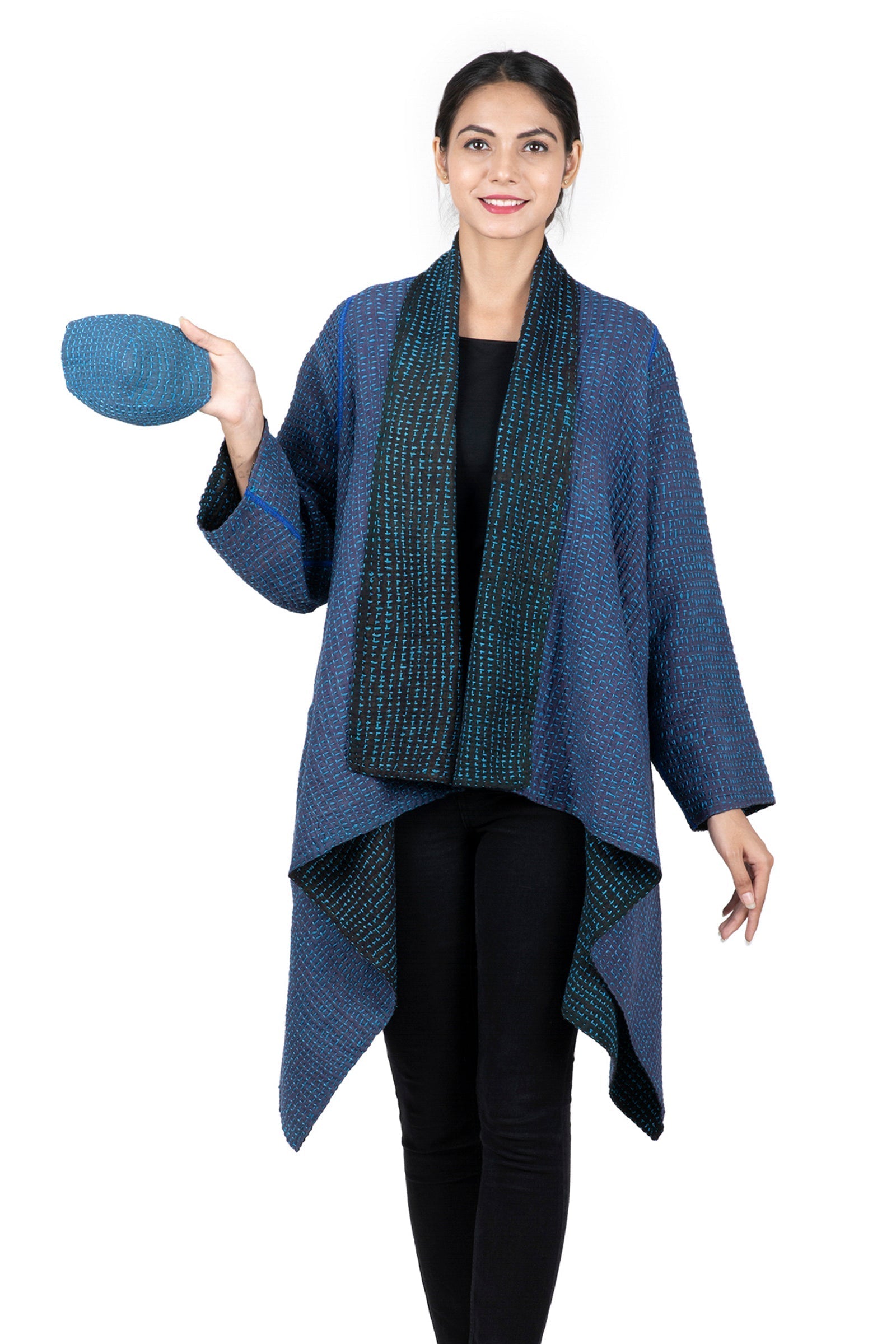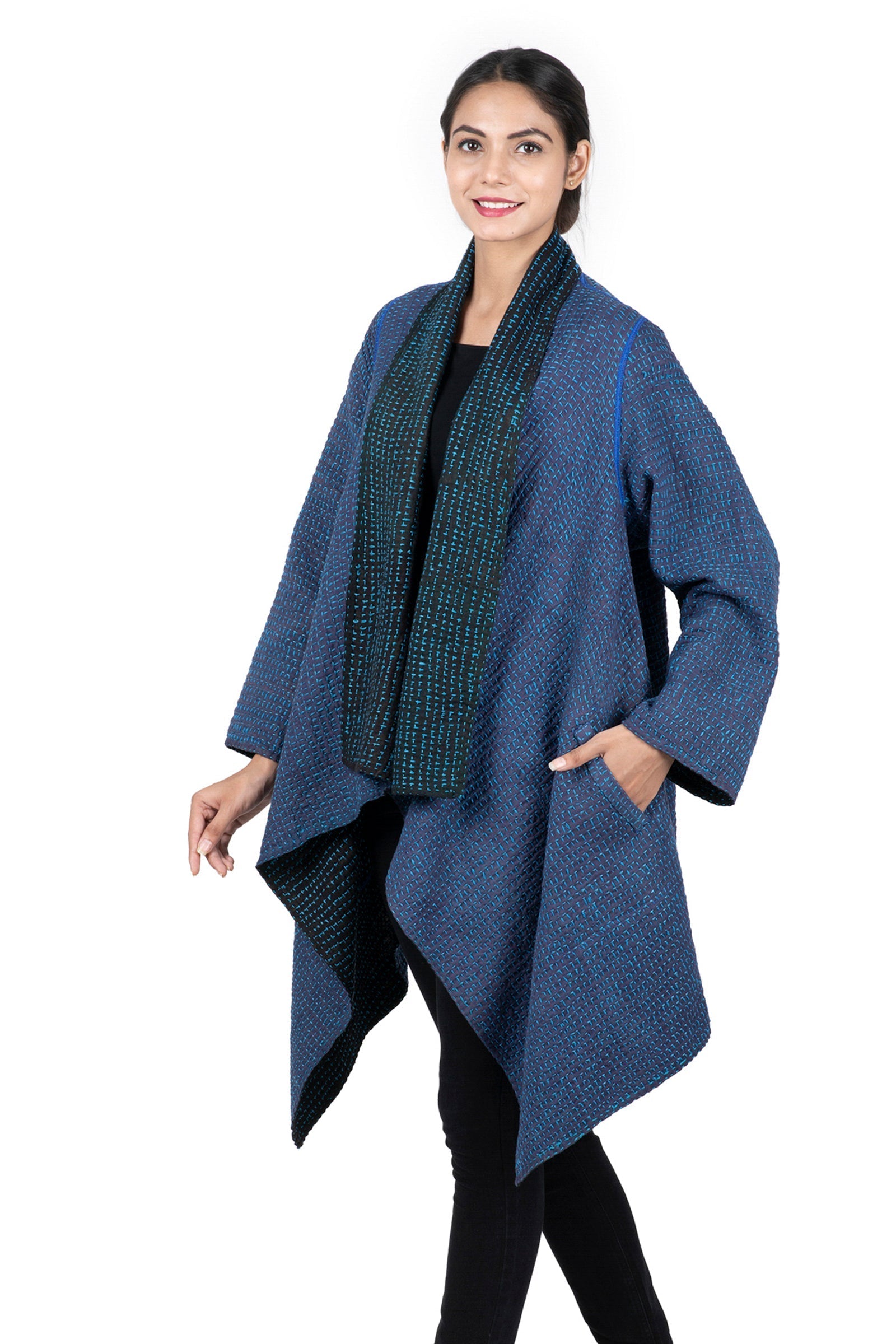 WAFFLE KANTHA DOUBLE WRAP JKT - wf3056-blu -