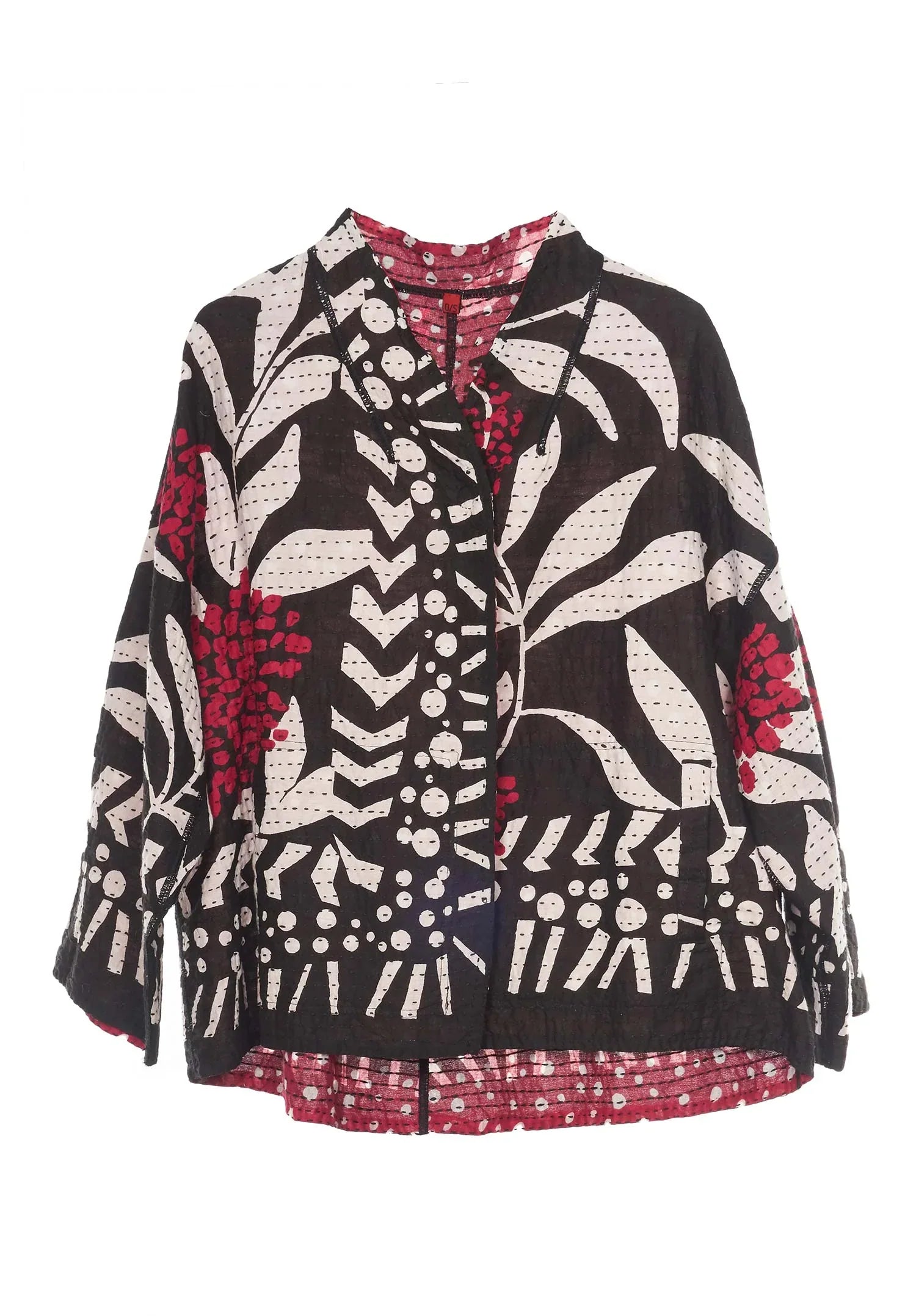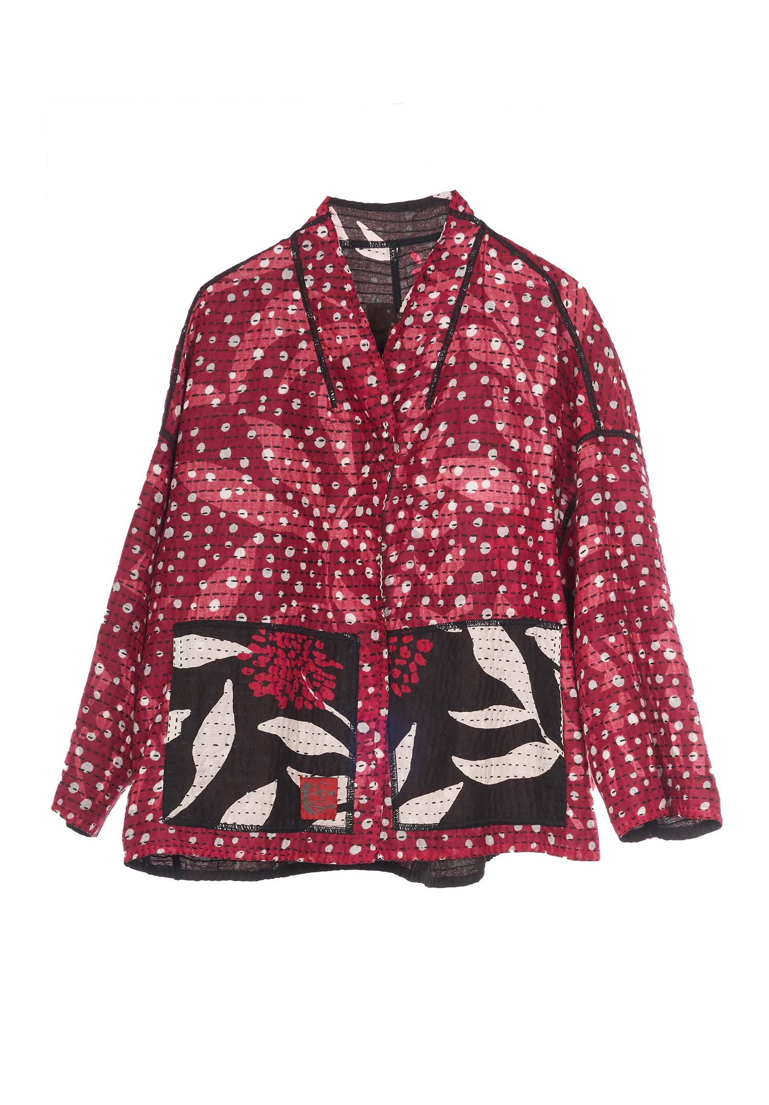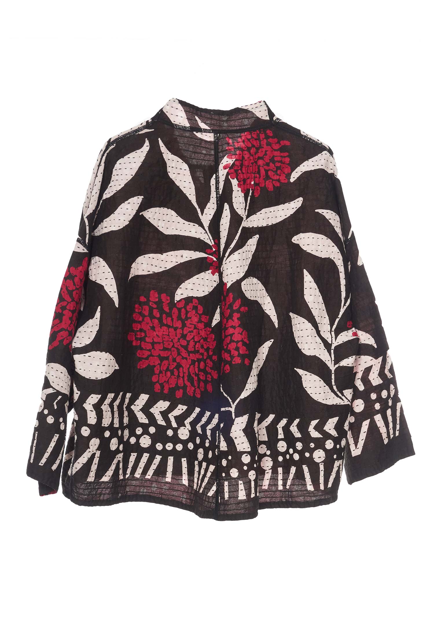 WHITE LEAF BBK KANTHA STAND COLLAR CROPPED JKT - mb2034-blk -