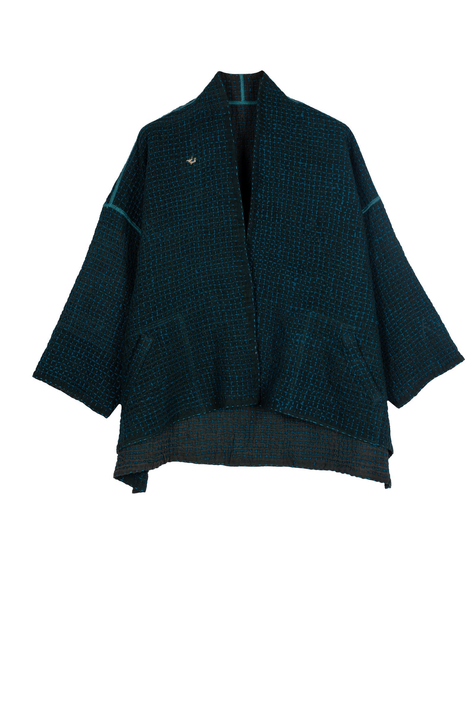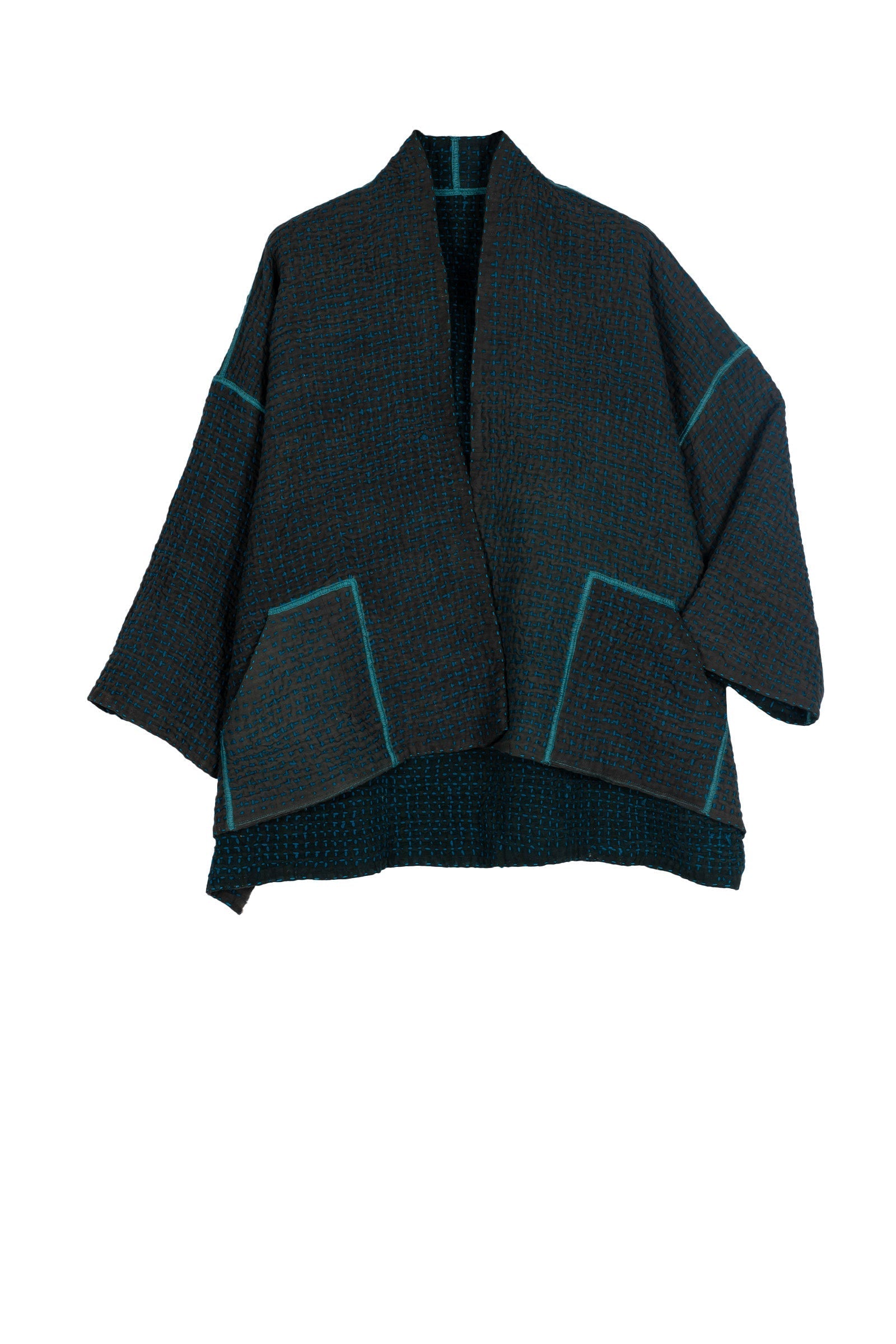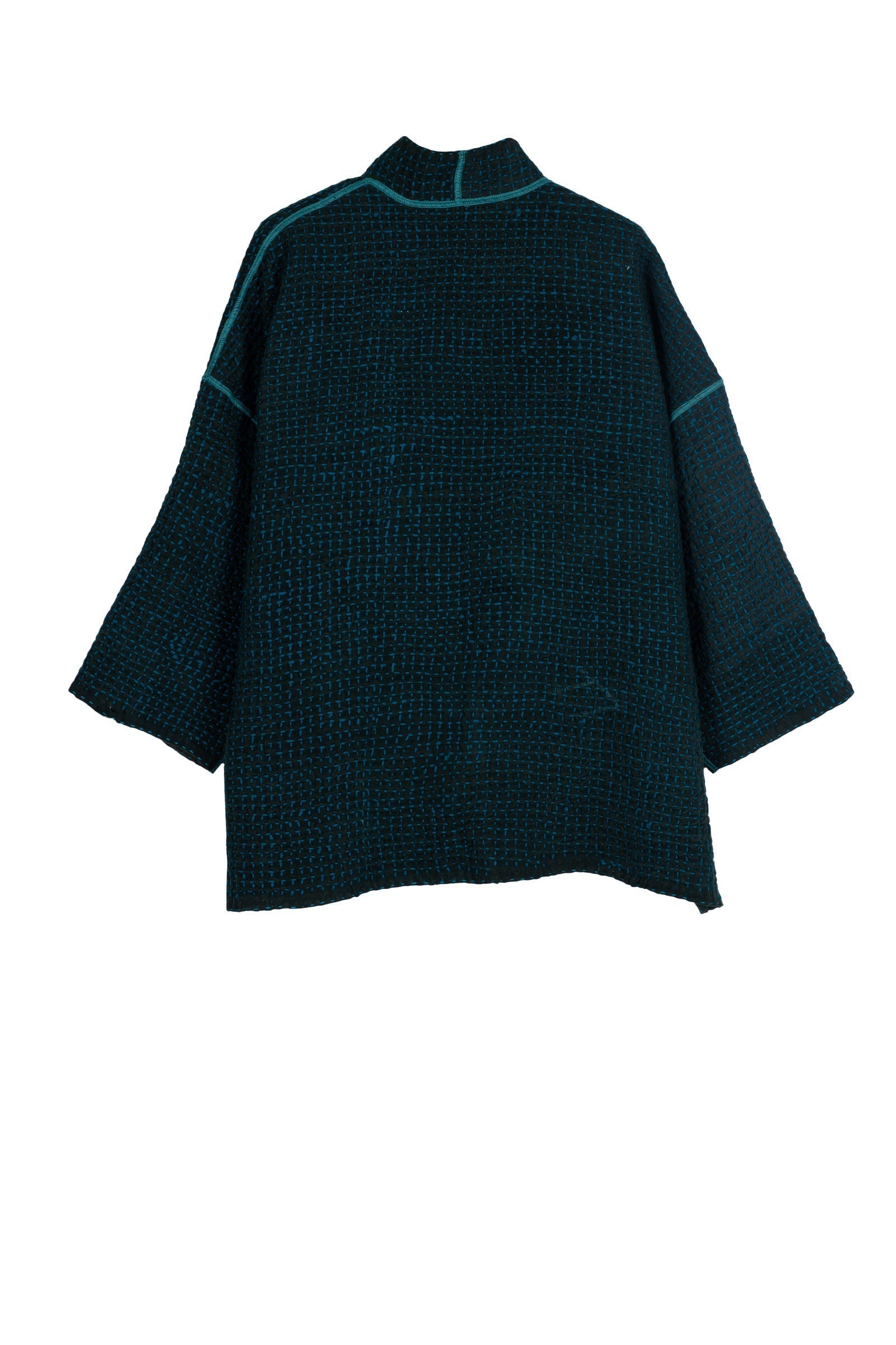 WOOL WAFFLE KANTHA MINI KIMONO JKT - ww3055-tel -