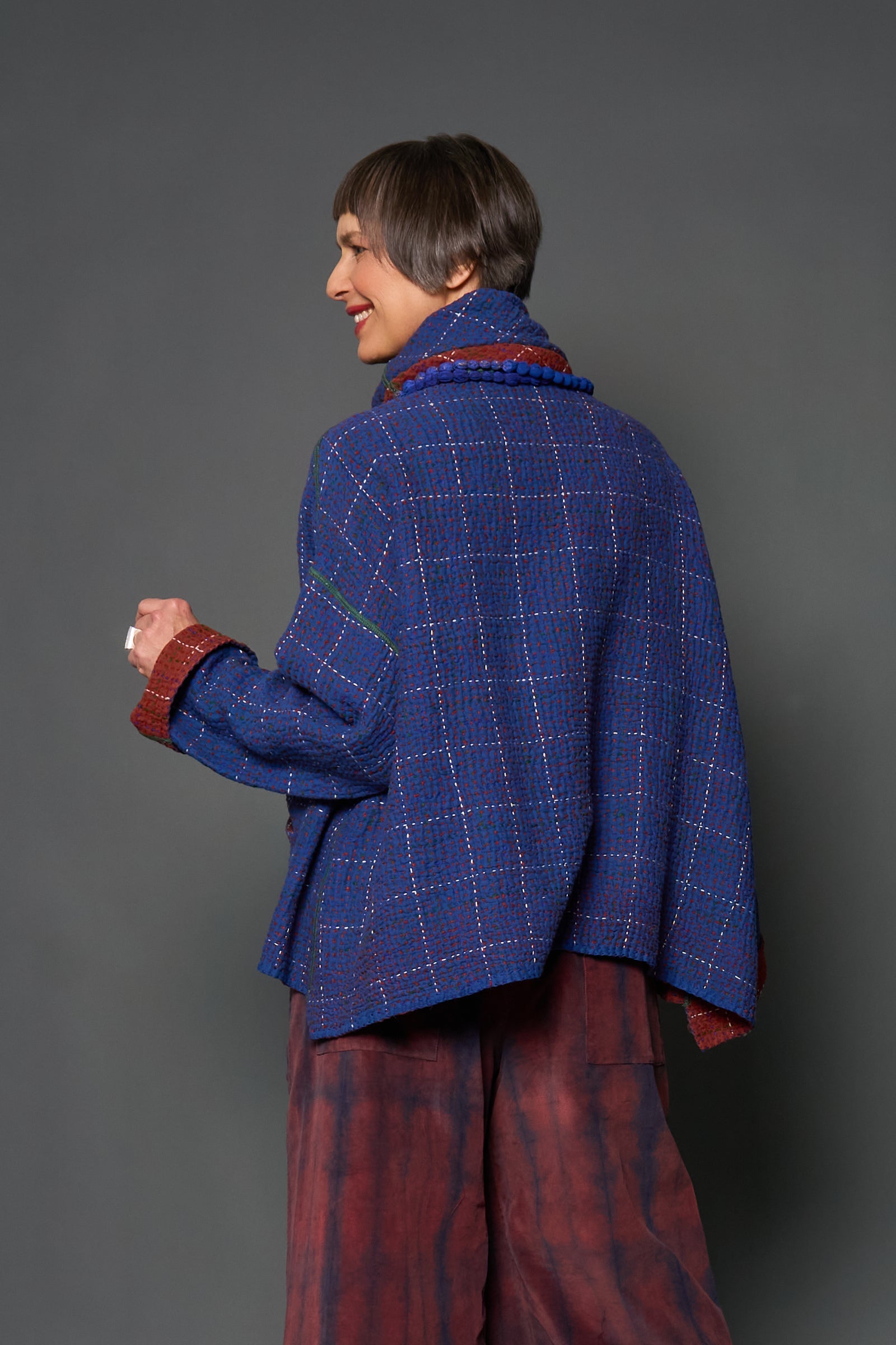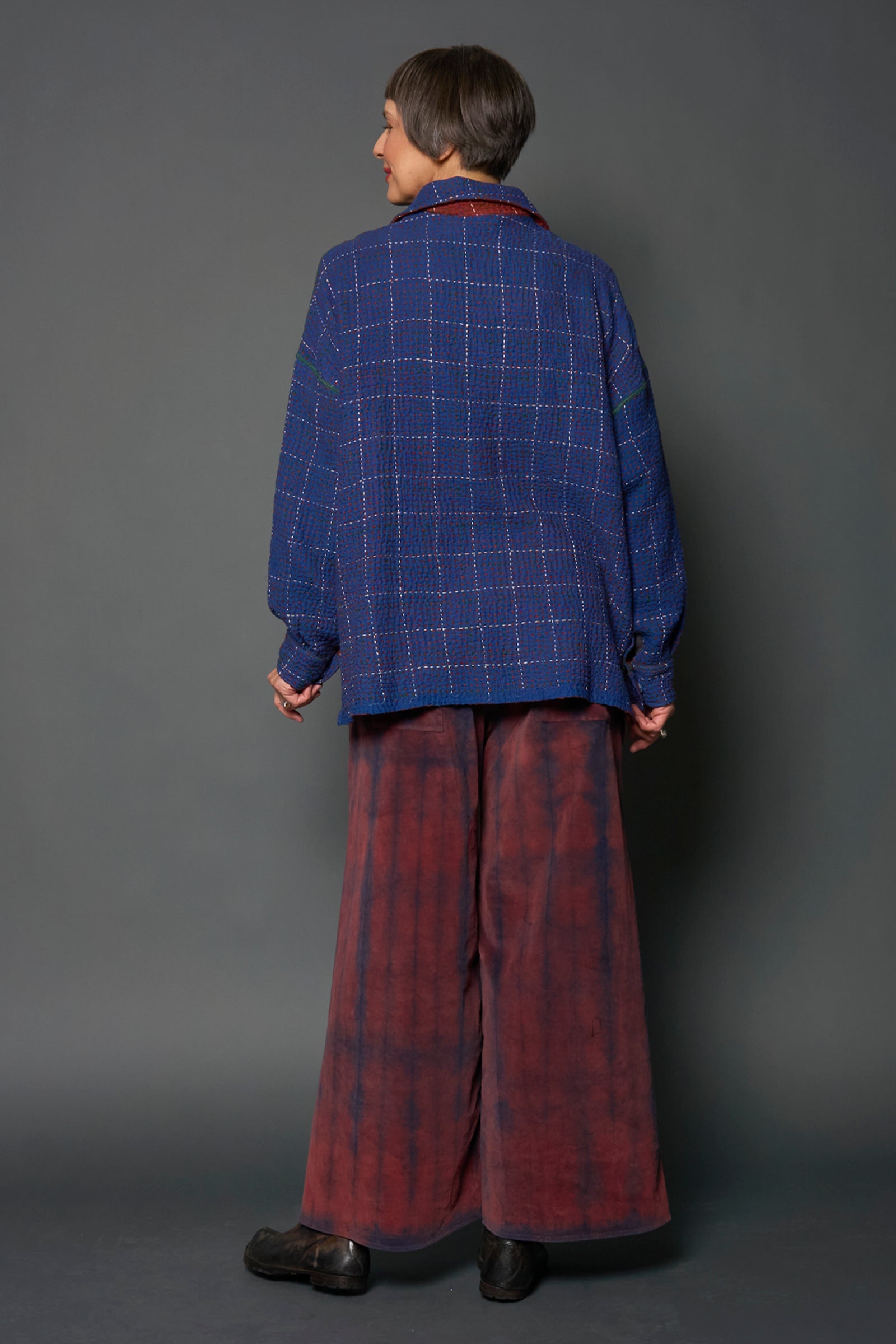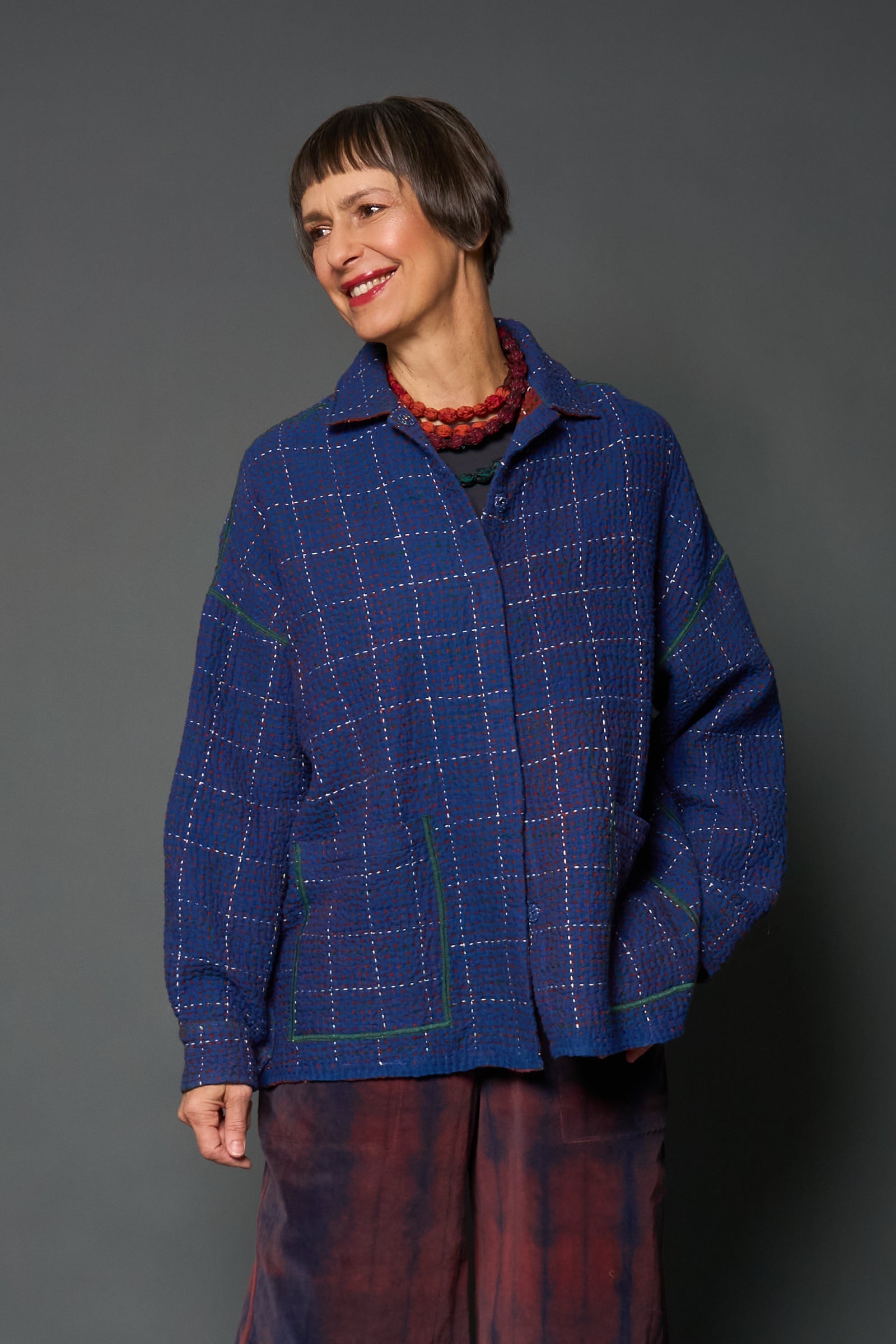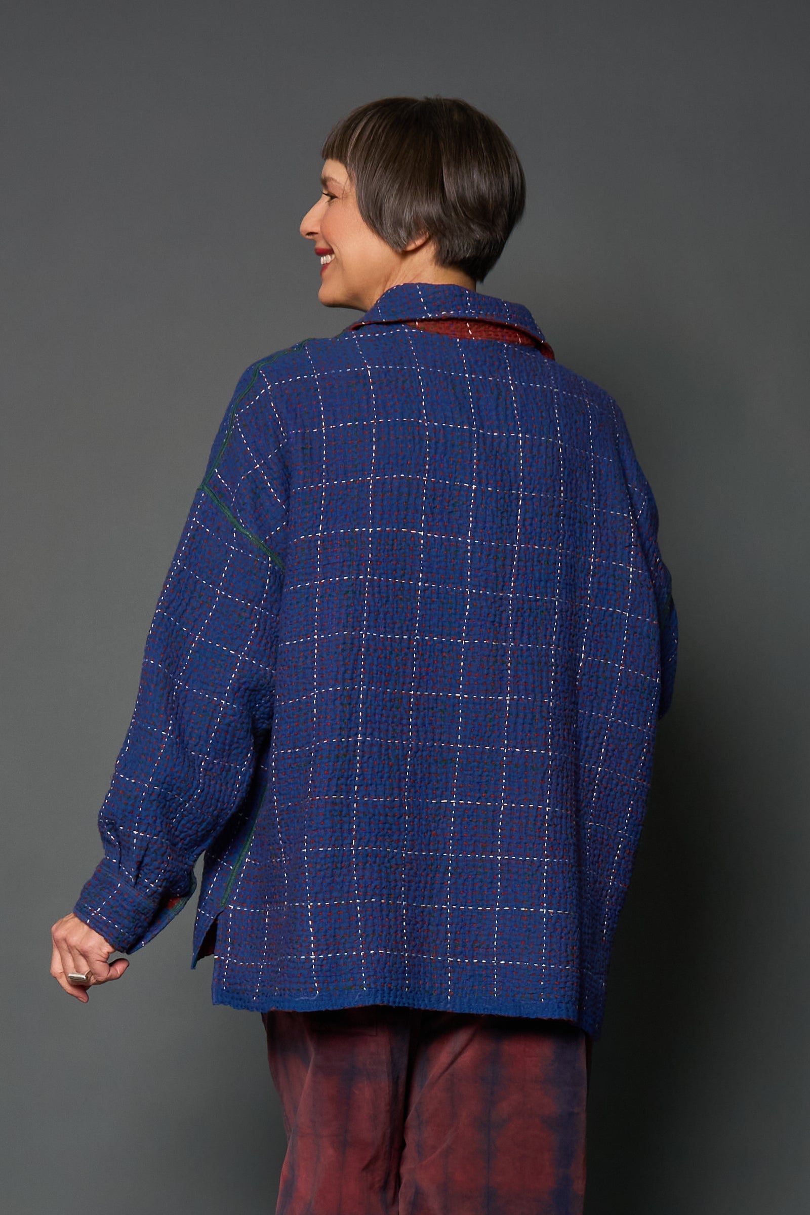 WOOL WAFFLE KANTHA RELAXED SHIRT JACKET - ww3j105-blu -