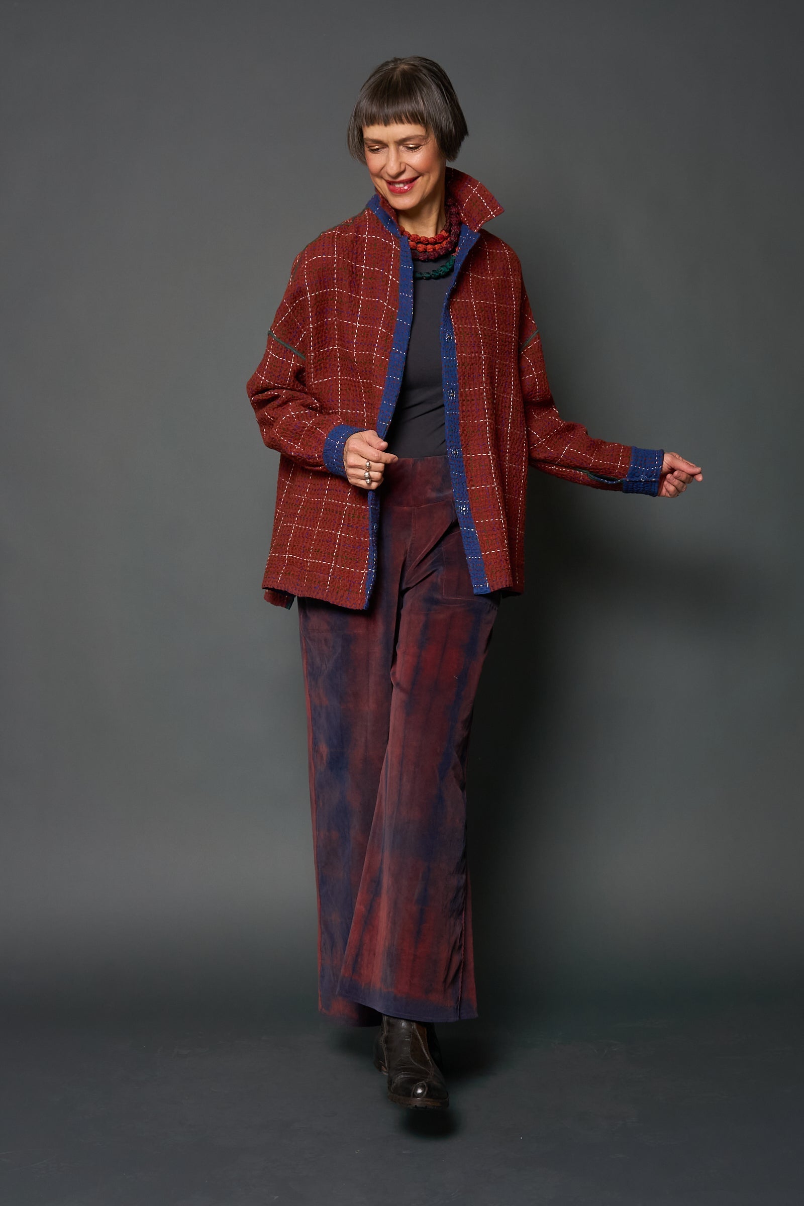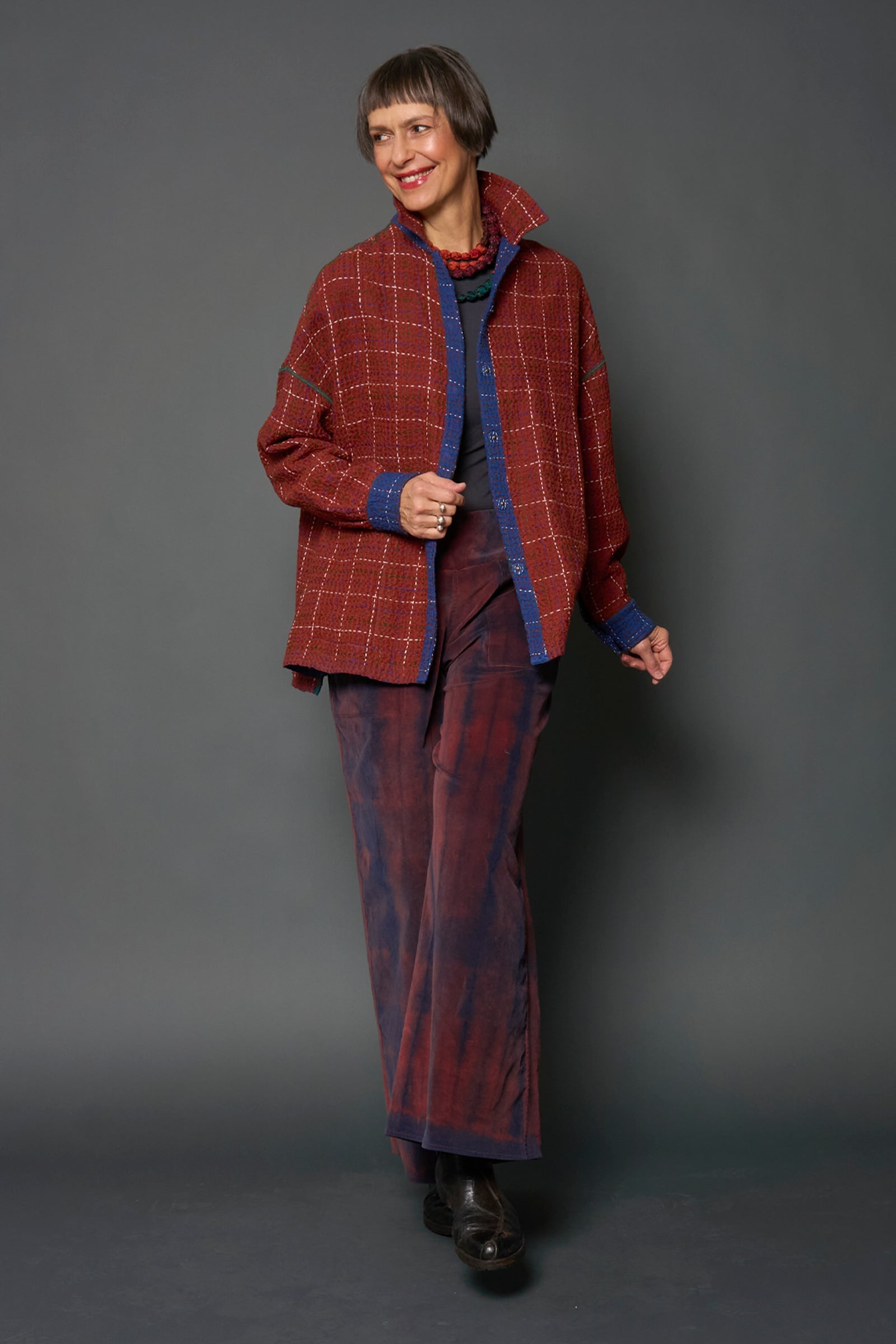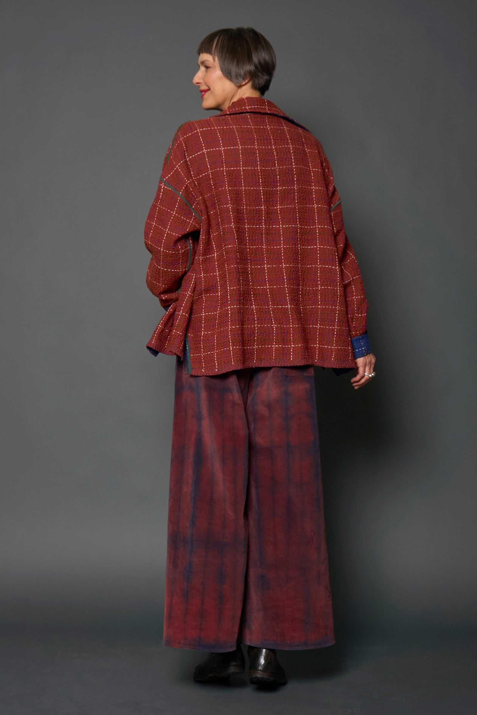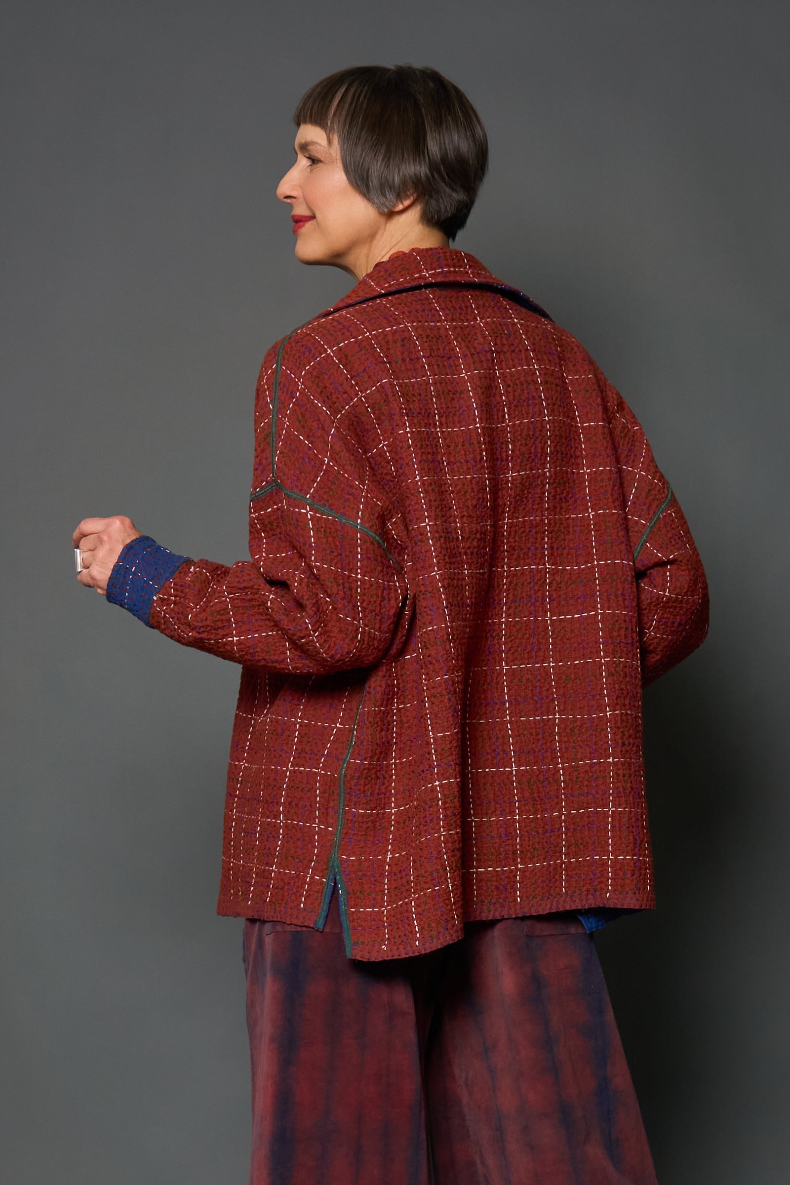 WOOL WAFFLE KANTHA RELAXED SHIRT JACKET - ww3j105-blu -