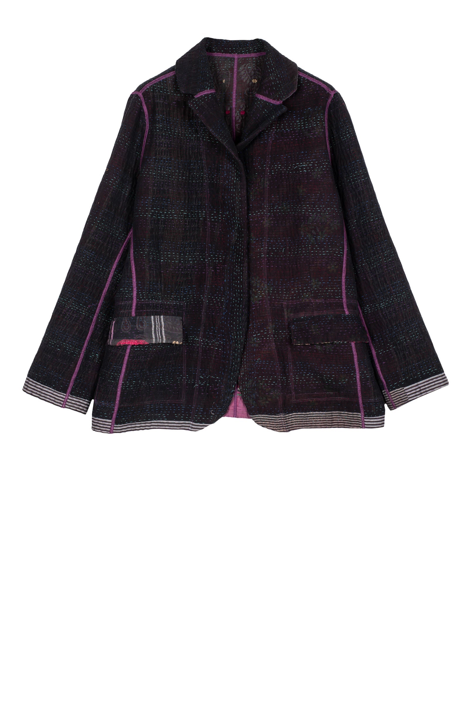 WOVEN VINTAGE COTTON KANTHA BASIC JACKET - fw4052-5002m -